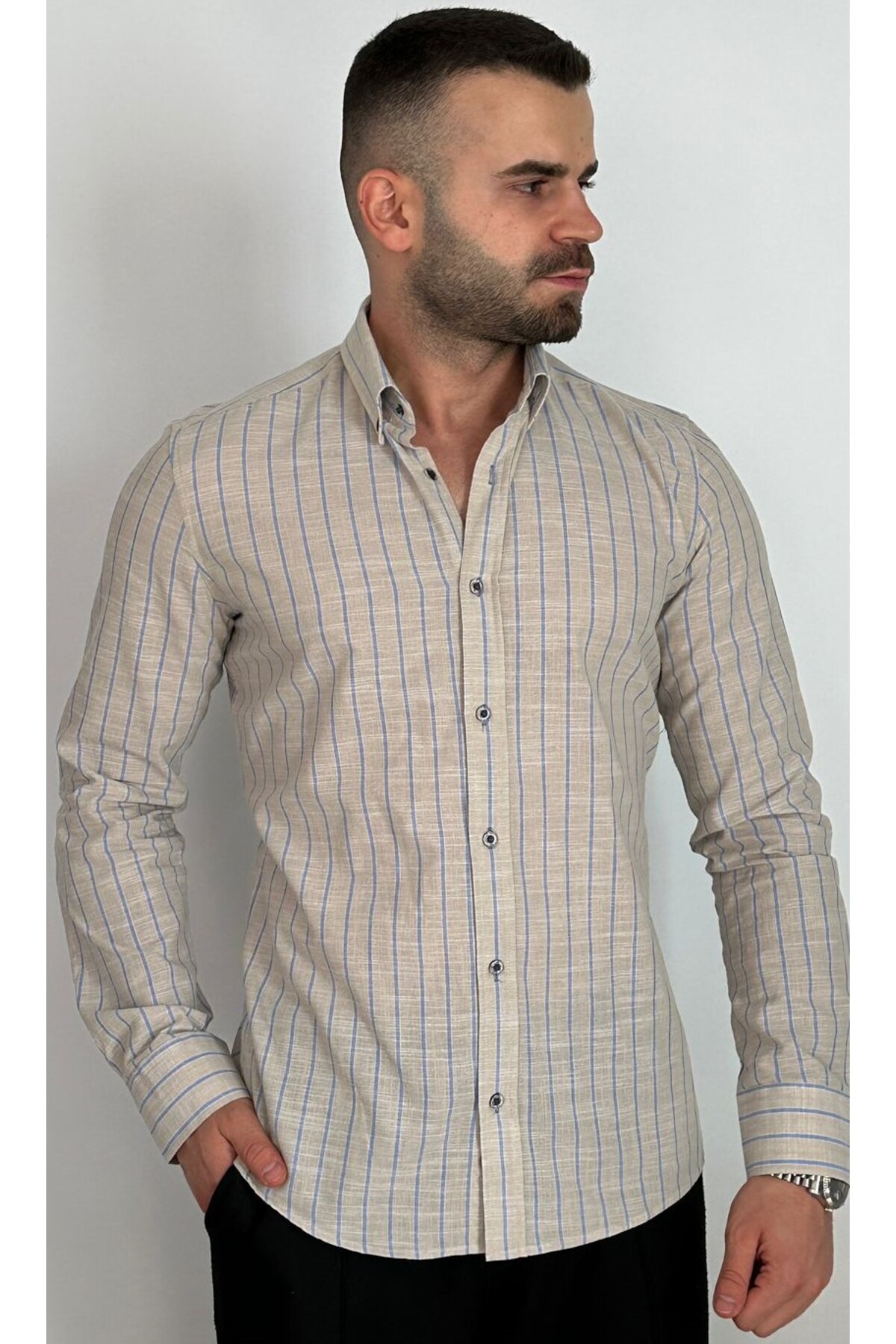 پیراهن مردانه بژ | M-102356 OBOYBEYCOLLECTİON