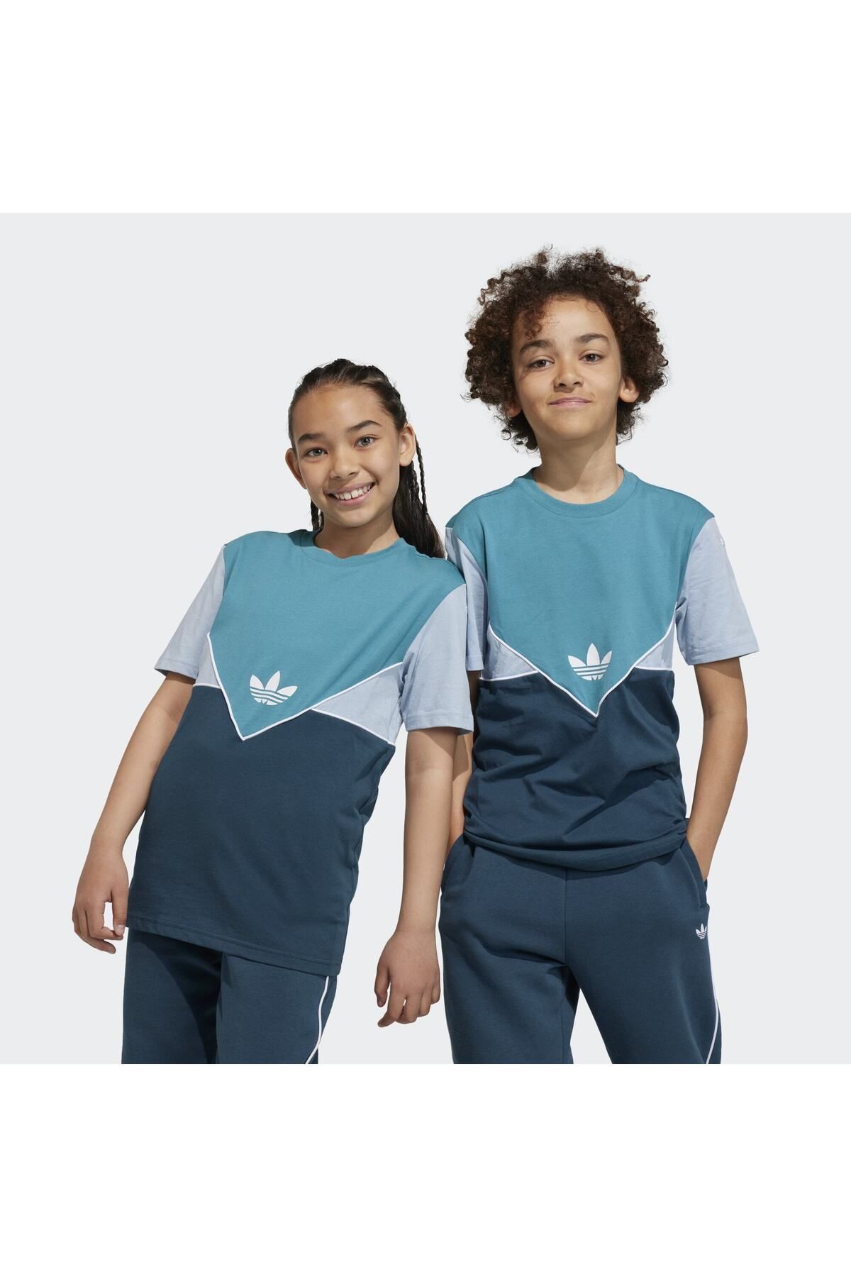 تیشرت آدیداس سبز آستین استاندارد پارچه | این تی شرت بچه گانه آدیداس دارای سبکی جذاب و سبک قدیمی با خطوط برش و جزئیات دنده ای است که از آرشیو ما الهام گرفته شده است.