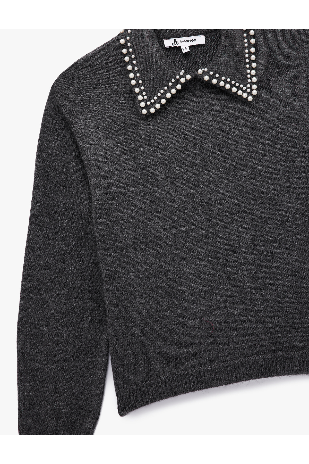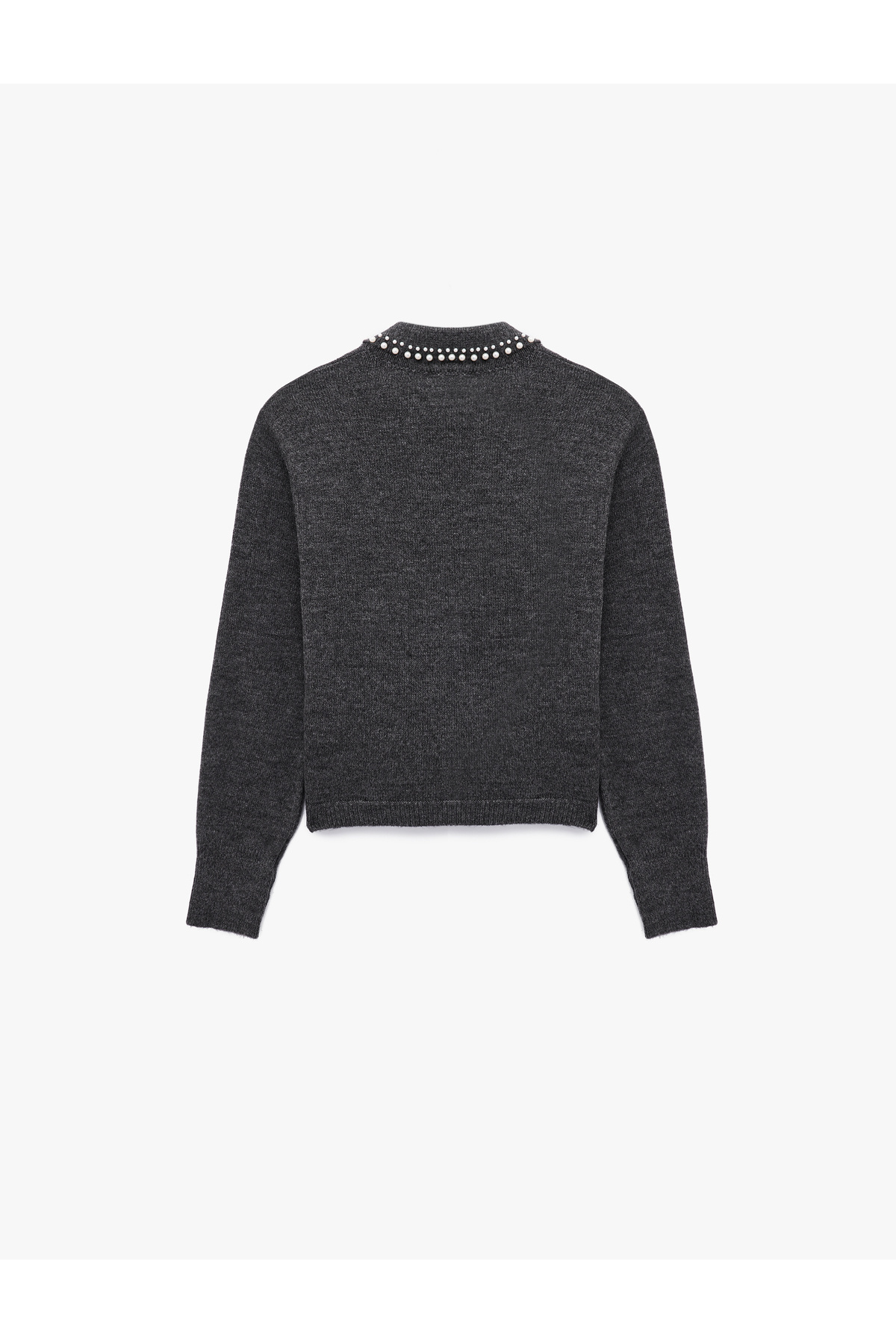 ژاکت بافتنی آستین بلند یقه پیتر پن طرح مروارید