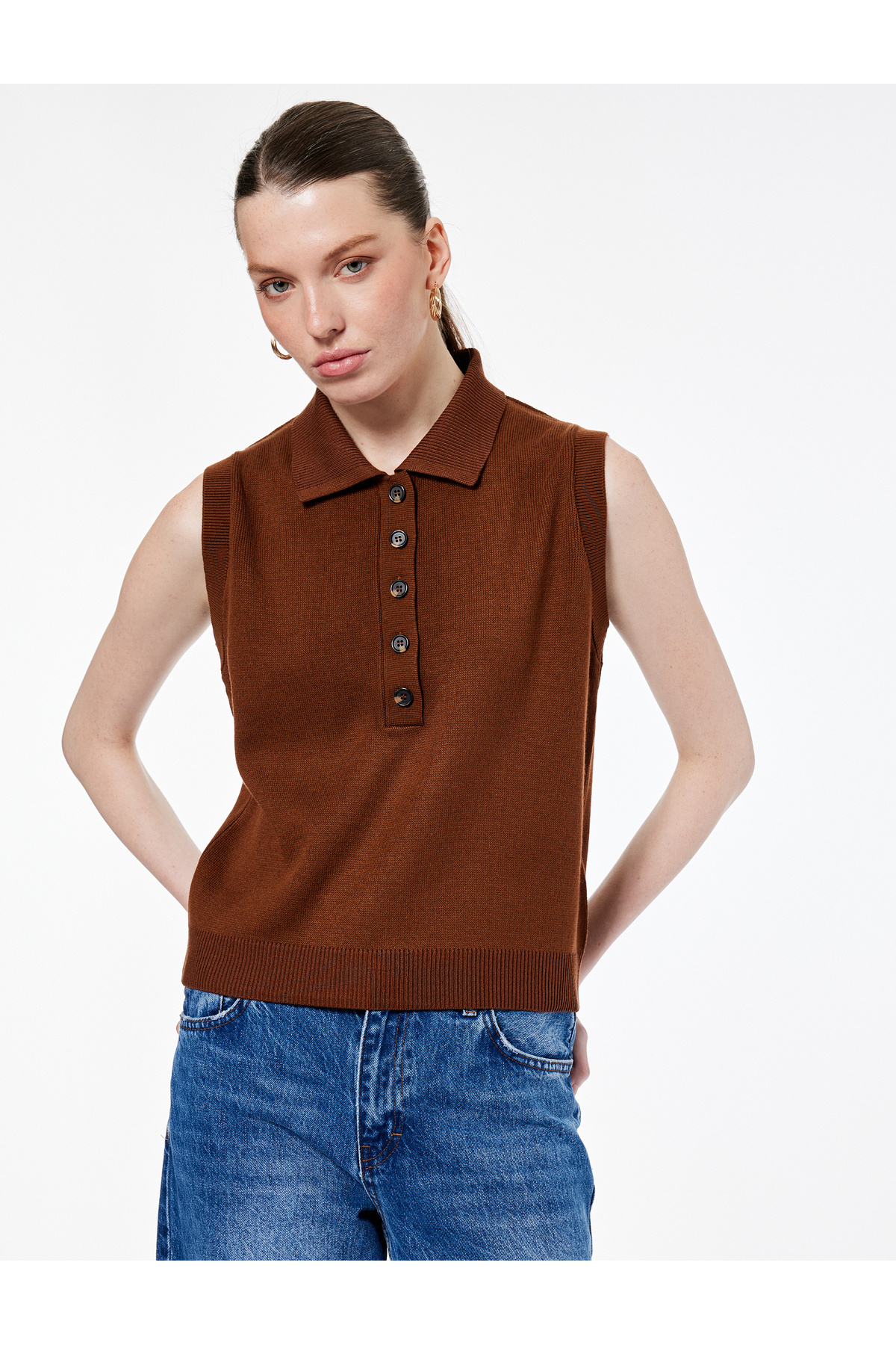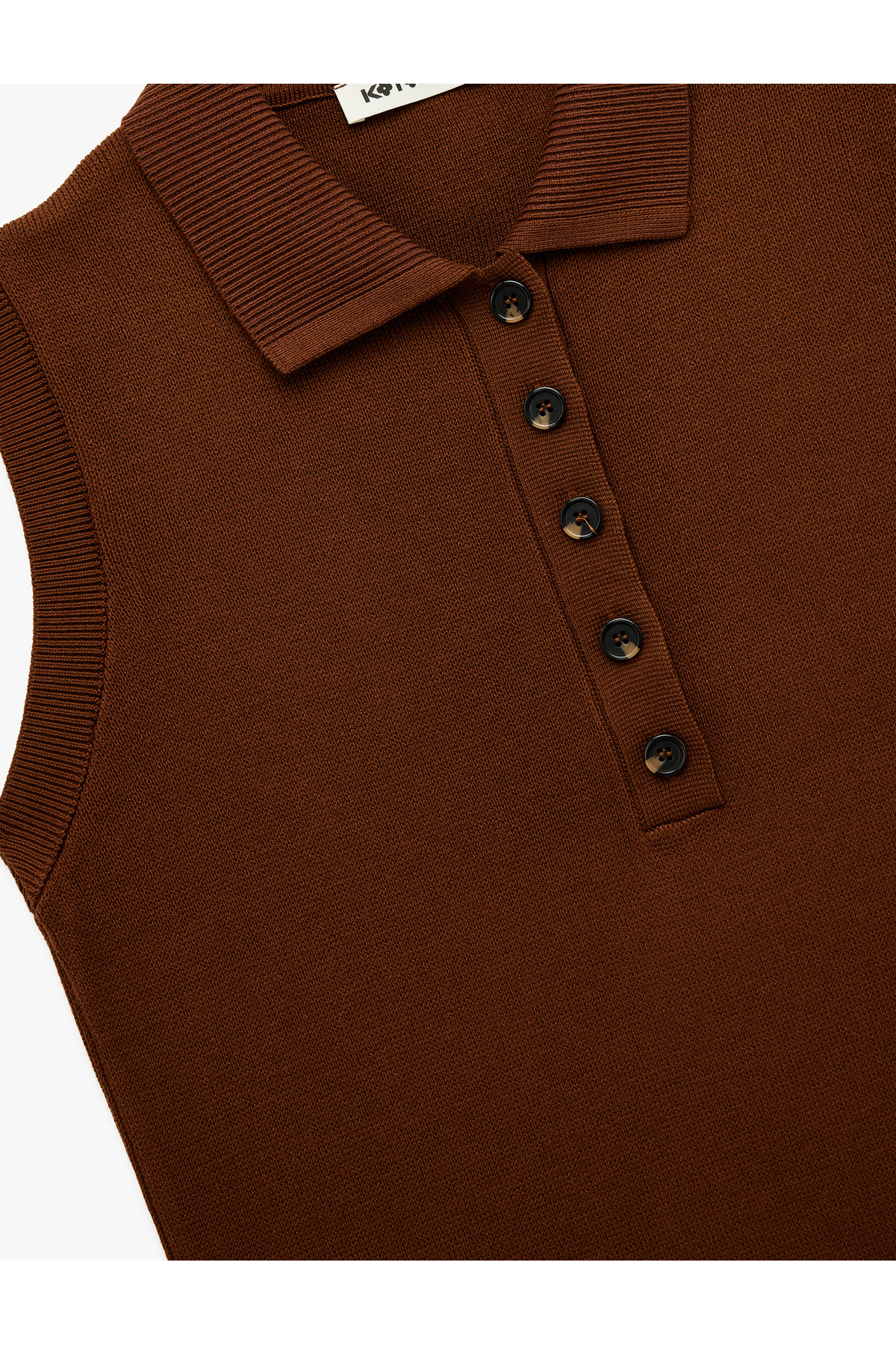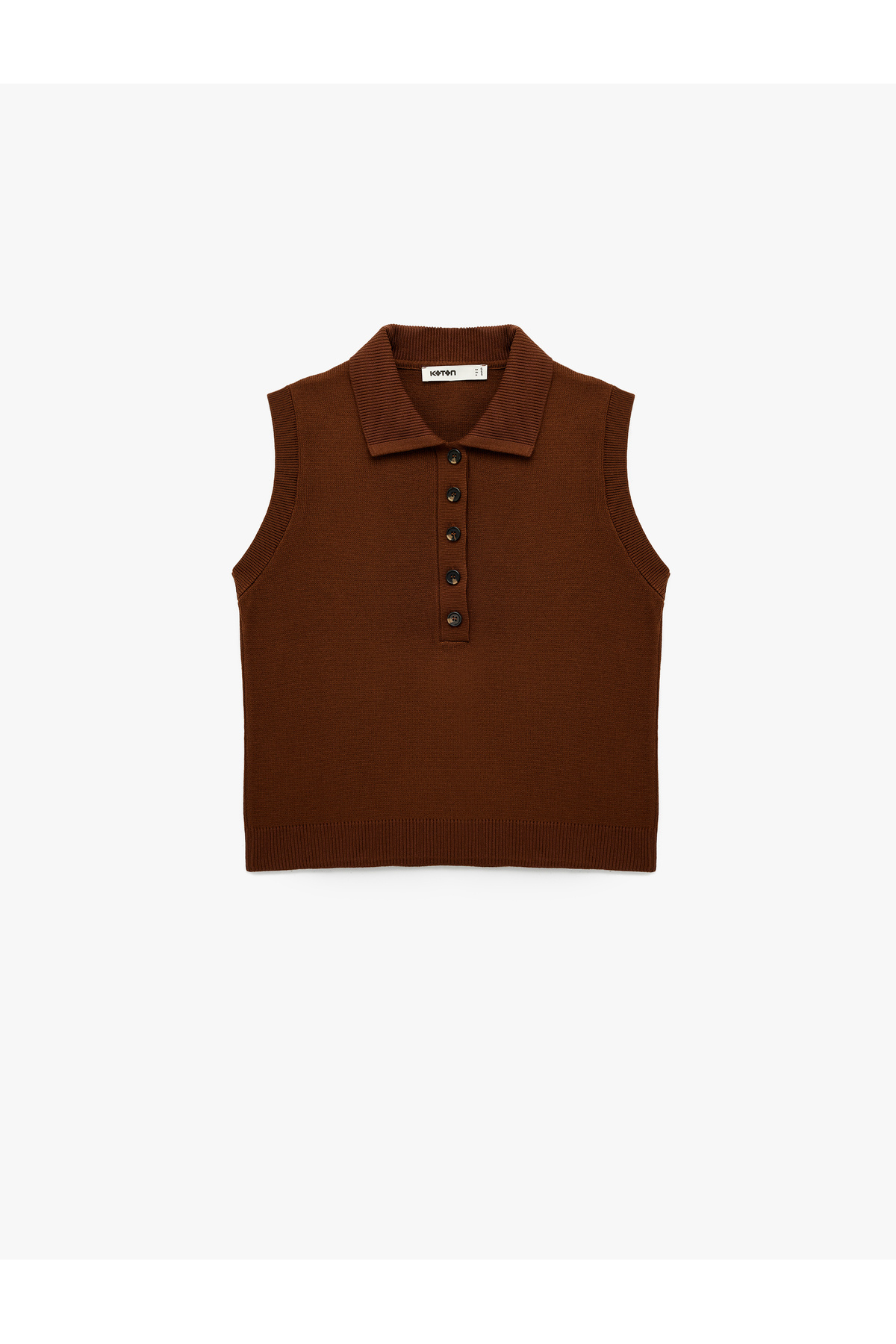 ژاکت بافتنی یقه پولو نیم دکمه بدون آستین سایز معمولی