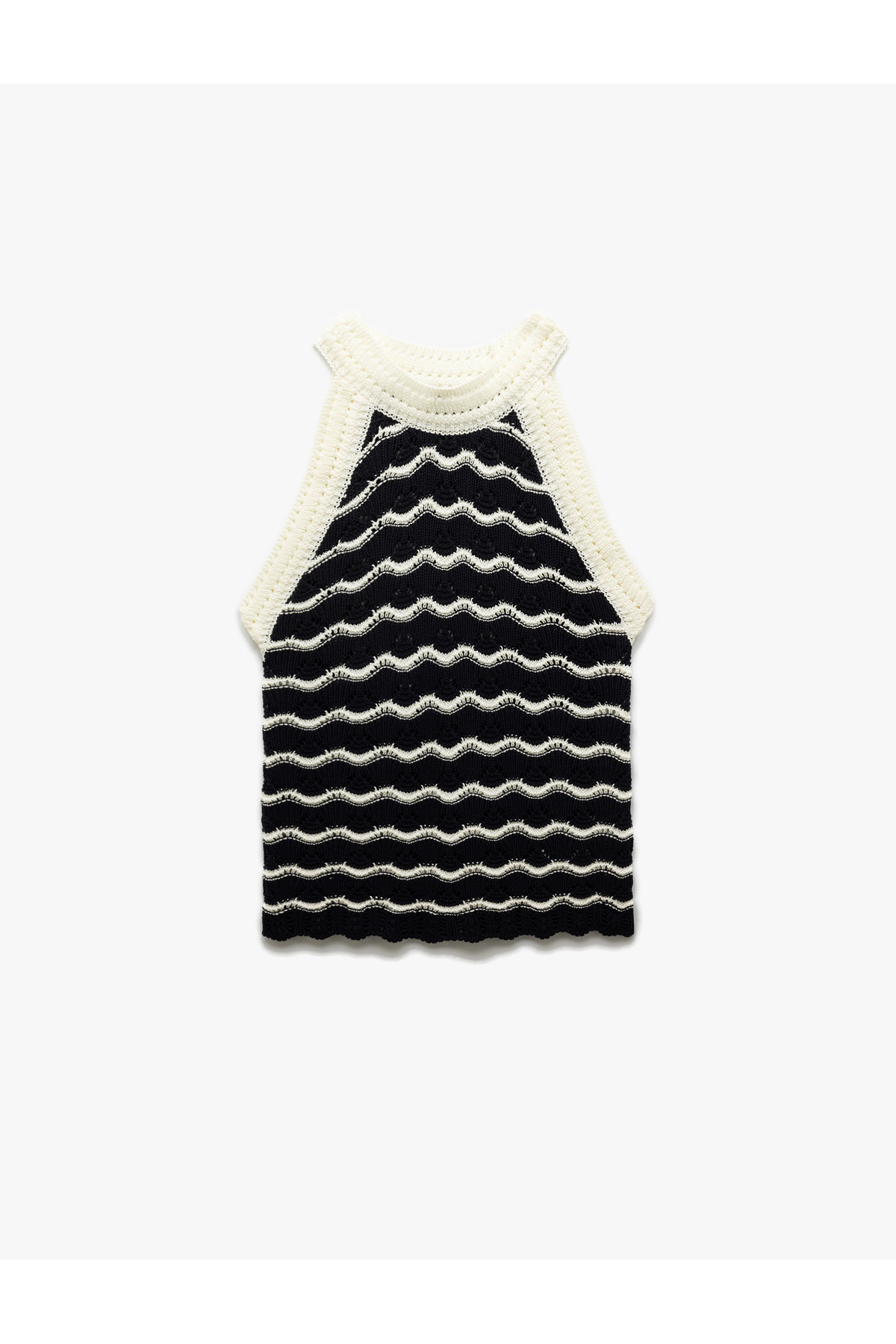 بلوز قلاببافی یقه اسکی بدون آستین با رنگ متضاد