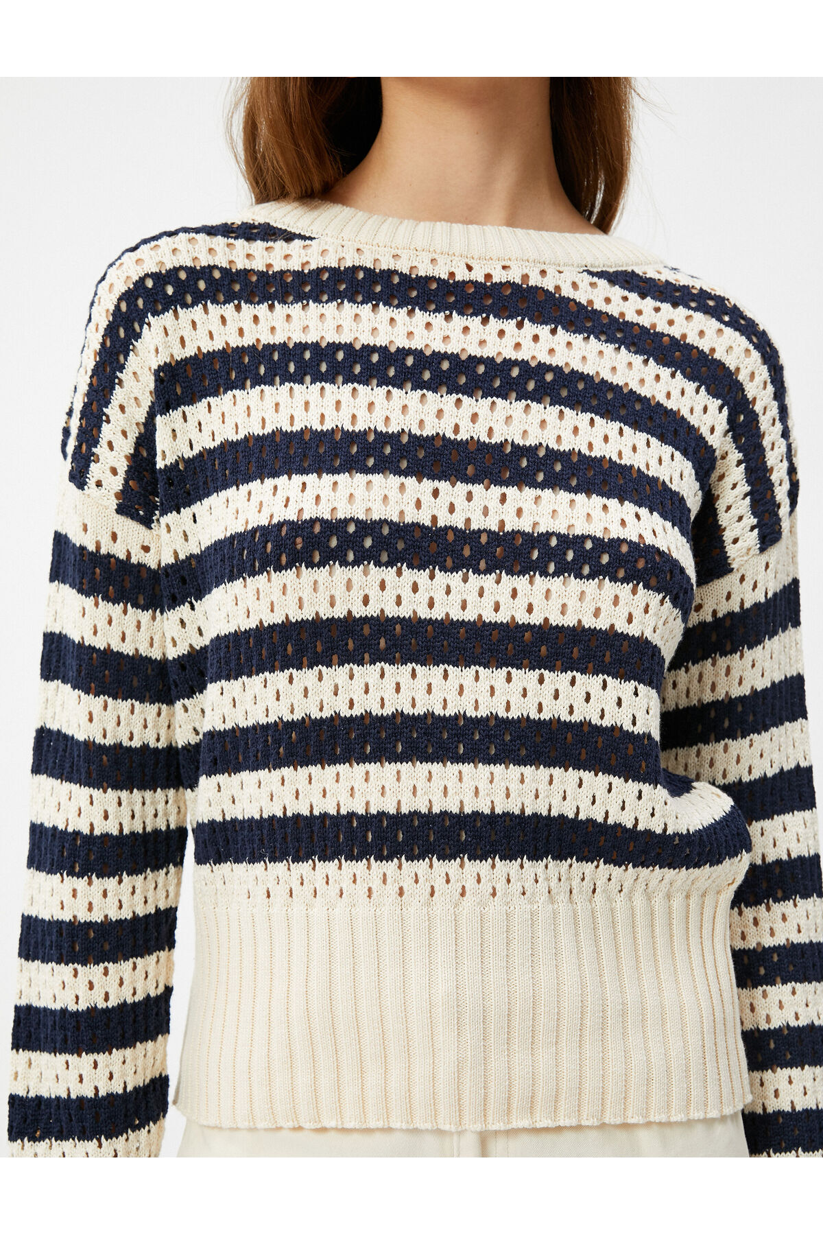 پلیور گشاد با بافت باز، یقه گرد، آستین بلند
