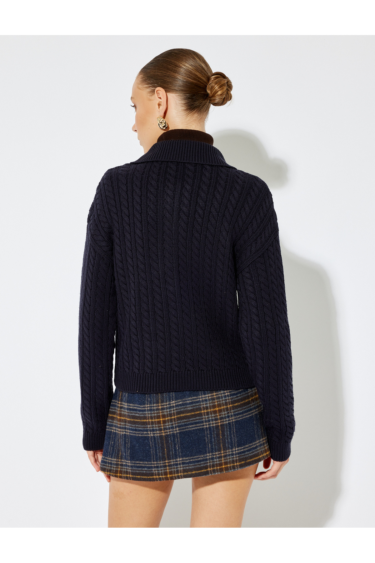 پلیور یقهدار با بافت گرهای کابلی، آستین بلند