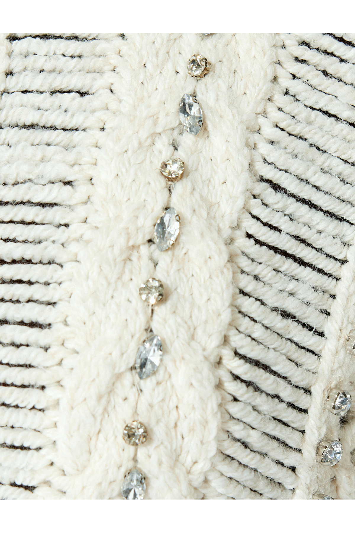 ژاکت بافتنی آستین بلند یقه گرد طرحدار مزین به طرح X Şahika Ercümen