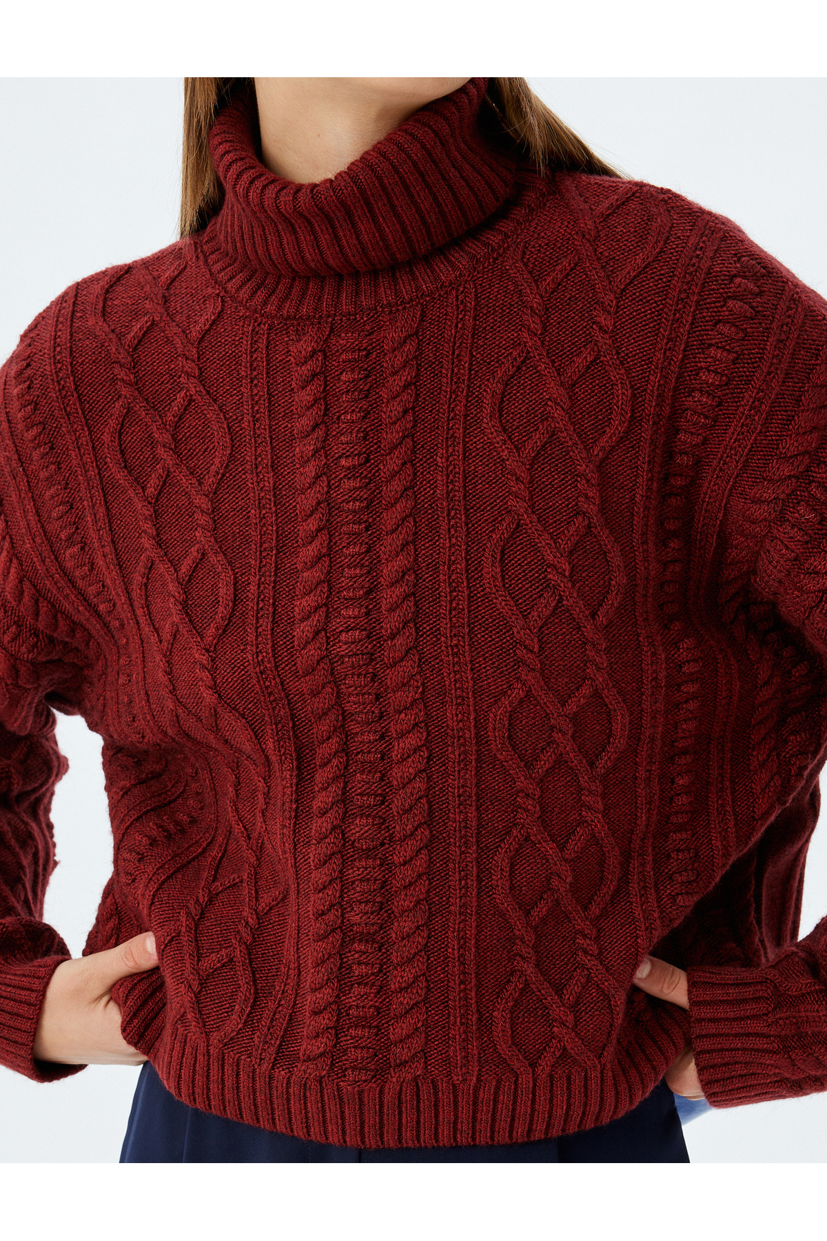 ژاکت یقه اسکی بزرگ با آستین بلند بافتنی کابلی