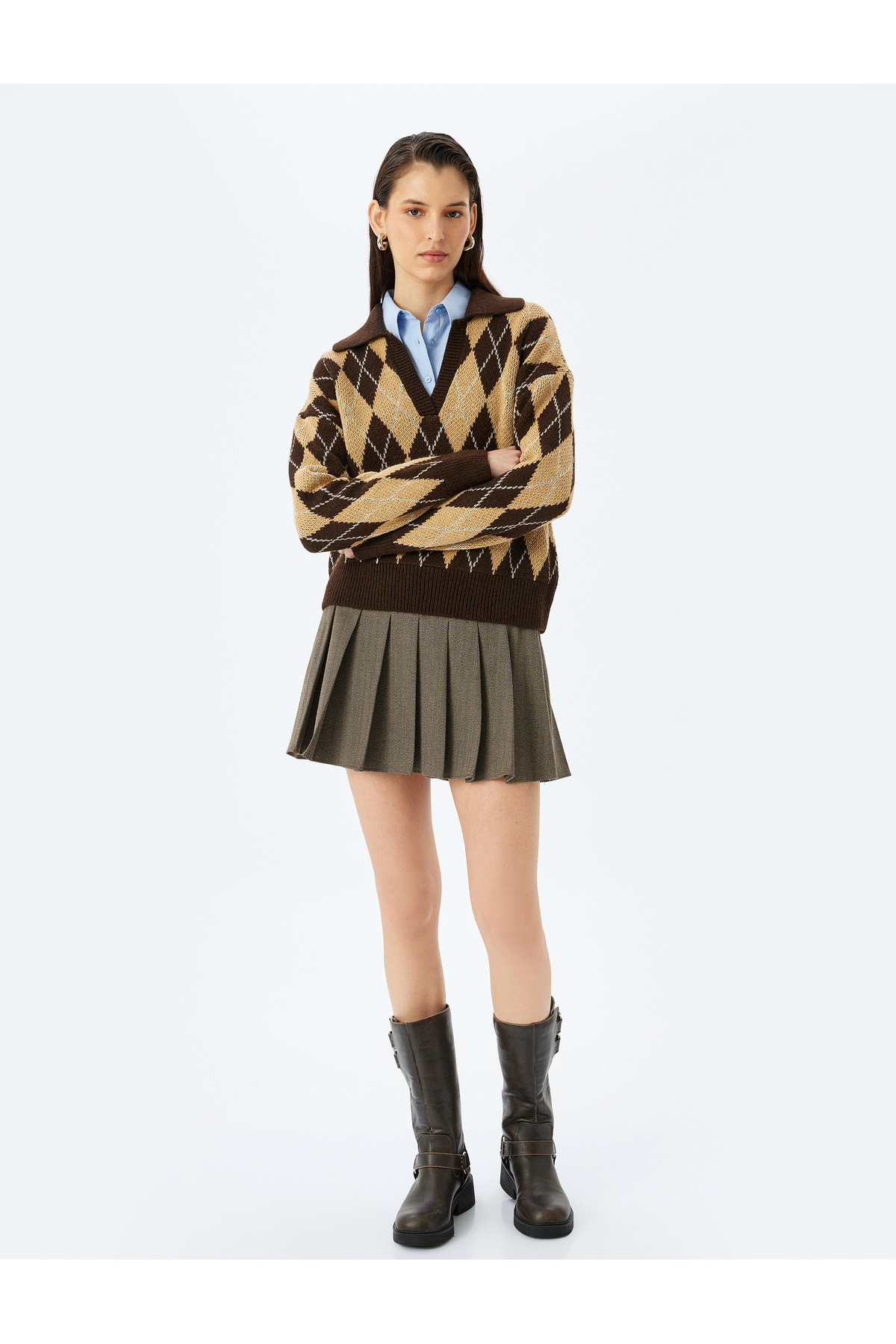 ژاکت بافتنی یقه پولو با طرح باقلوا نرم