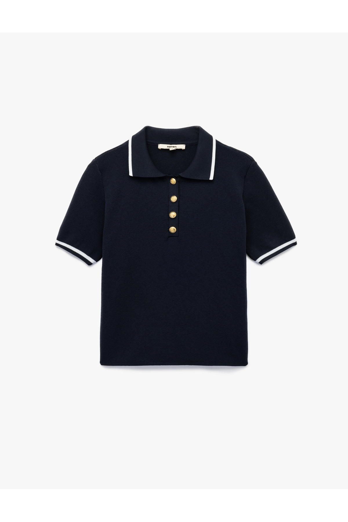 ژاکت بافتنی زنانه یقه پولو آستین کوتاه دکمهدار، سرمهای، مدل 6Wak90247Ht