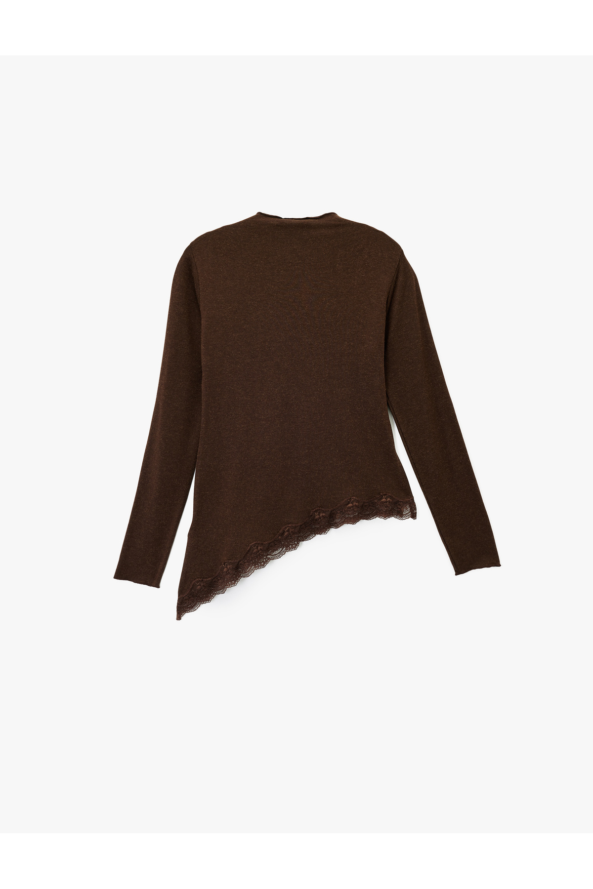 تیشرت آستین بلند یقه گرد نامتقارن طرح معمولی سایز توری
