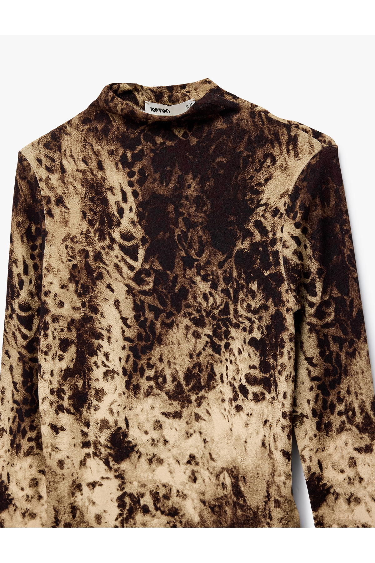 تیشرت آستین بلند یقه بلند طرح پلنگی اسلیم فیت مدل X Şahika Ercümen