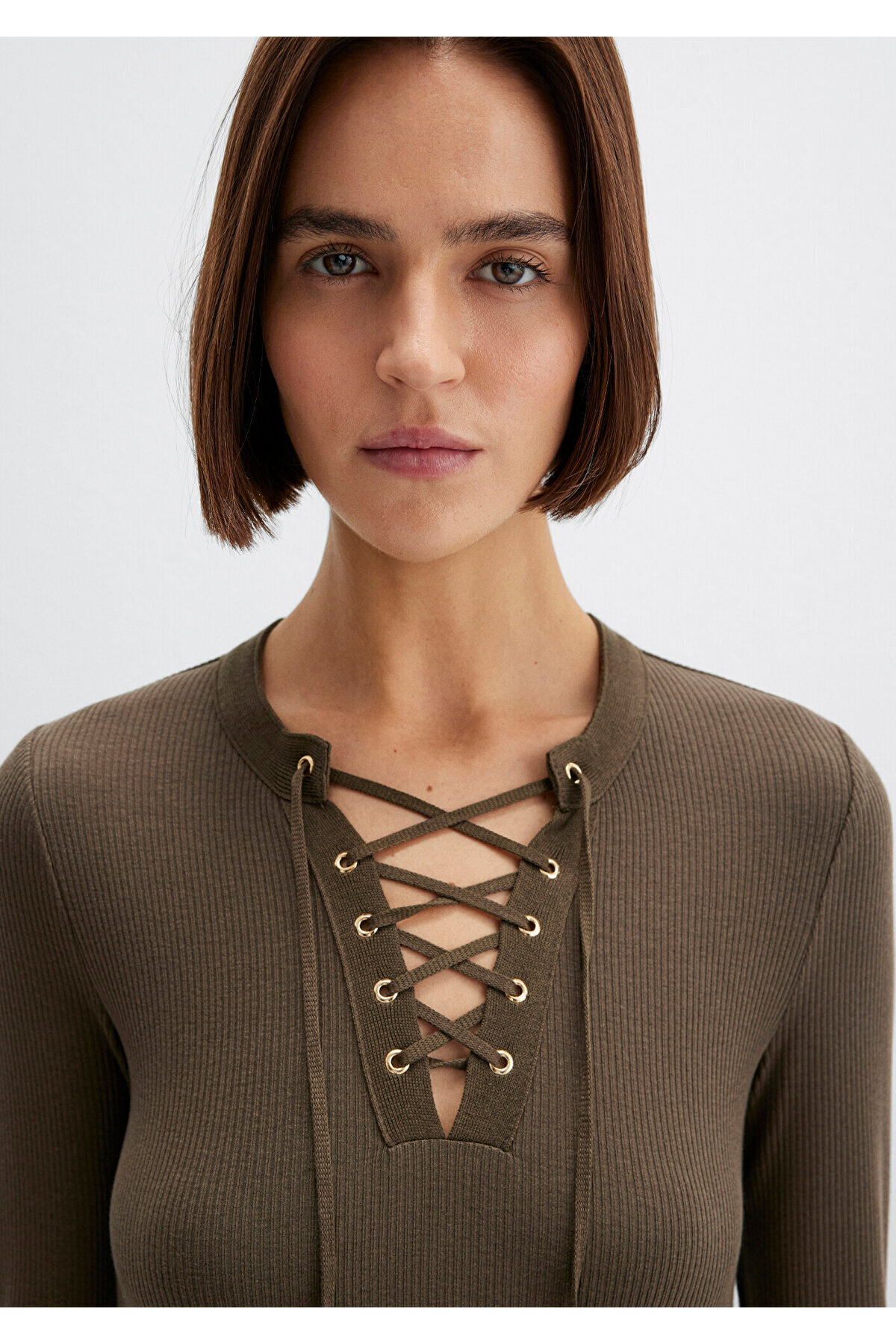 تیشرت آستین بلند خاکی، مدل چسبان، ۱۶۱۳۸۳۹-۸۷۵۳۸