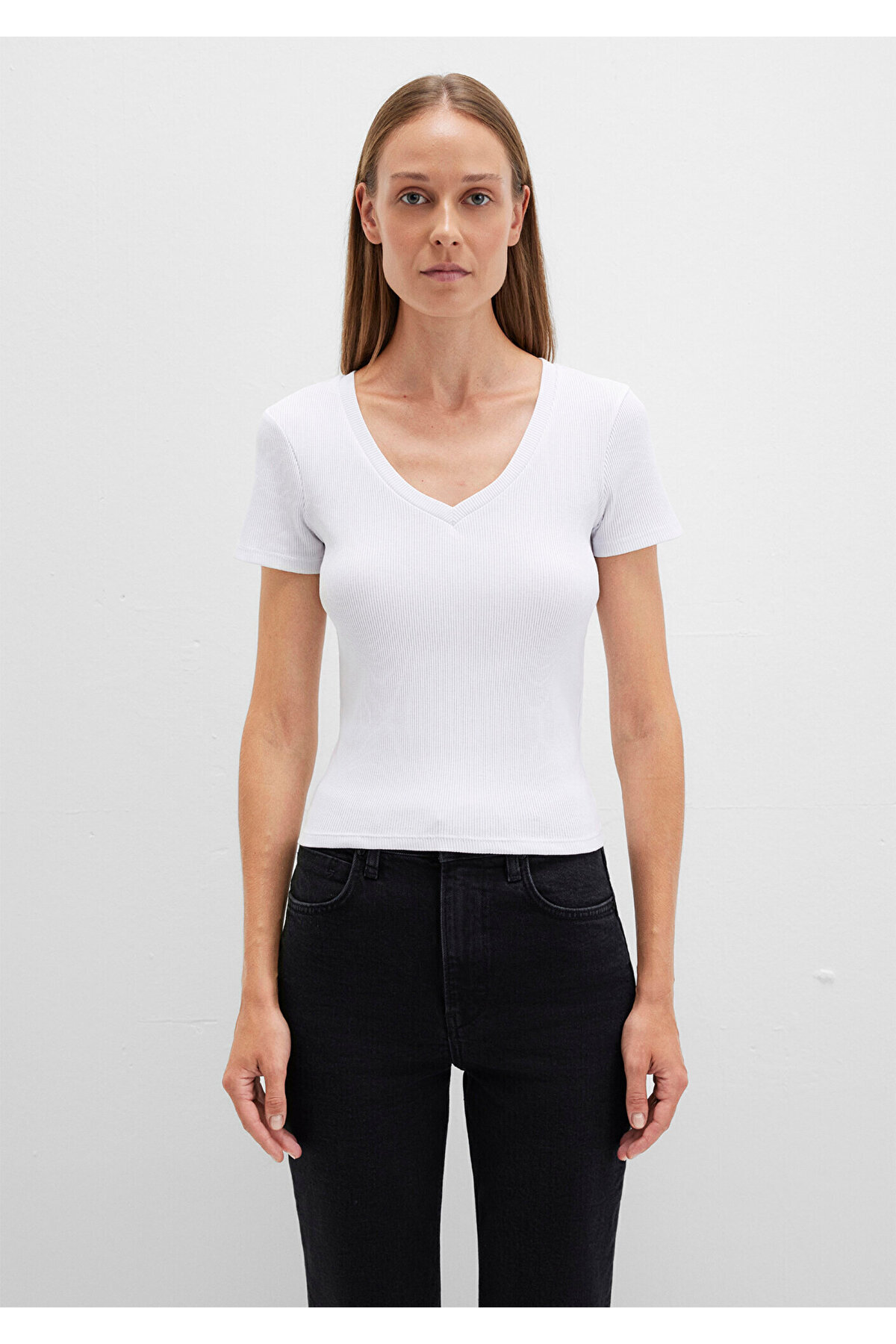 تیشرت یقه هفت سفید ساده، فیت / فیت بدننما، مدل ۱۶۰۱۰۴۰-۶۲۰