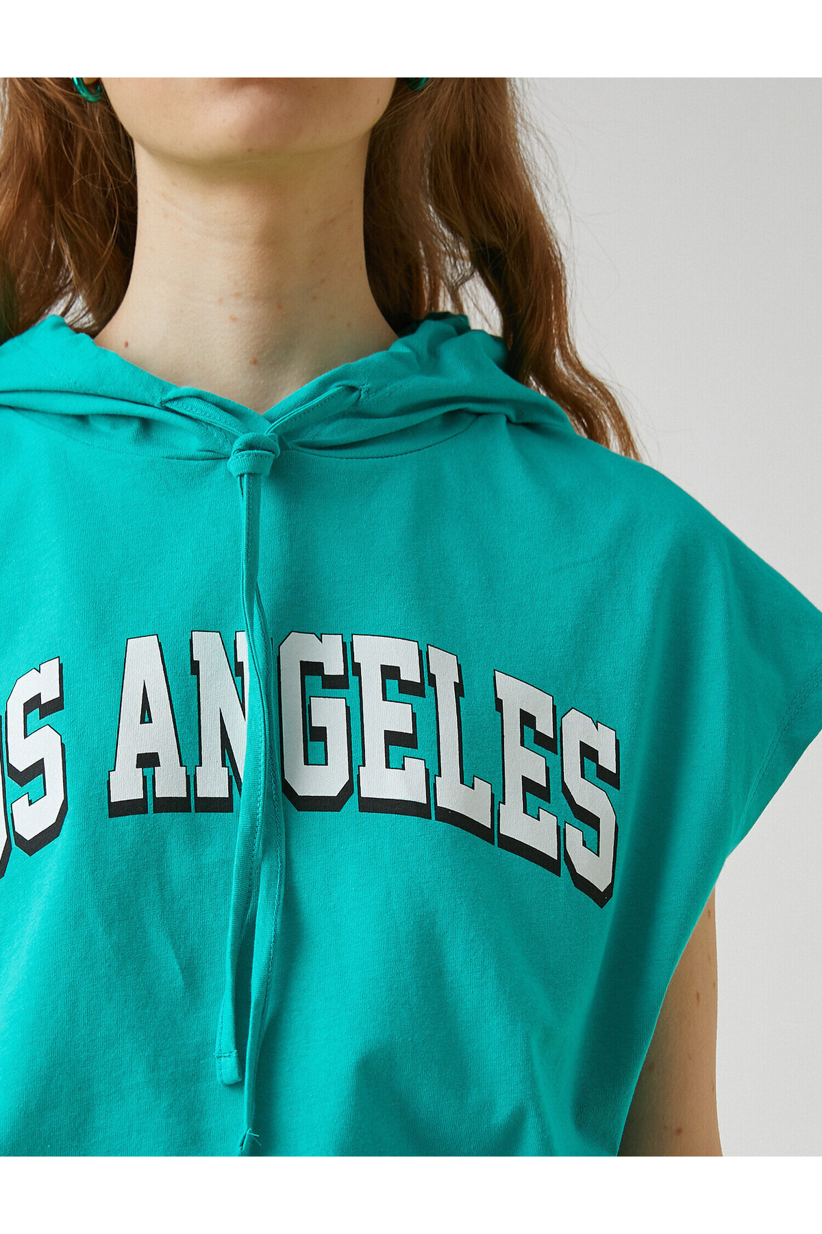 تیشرت کلاهدار چاپی بدون آستین کراپ