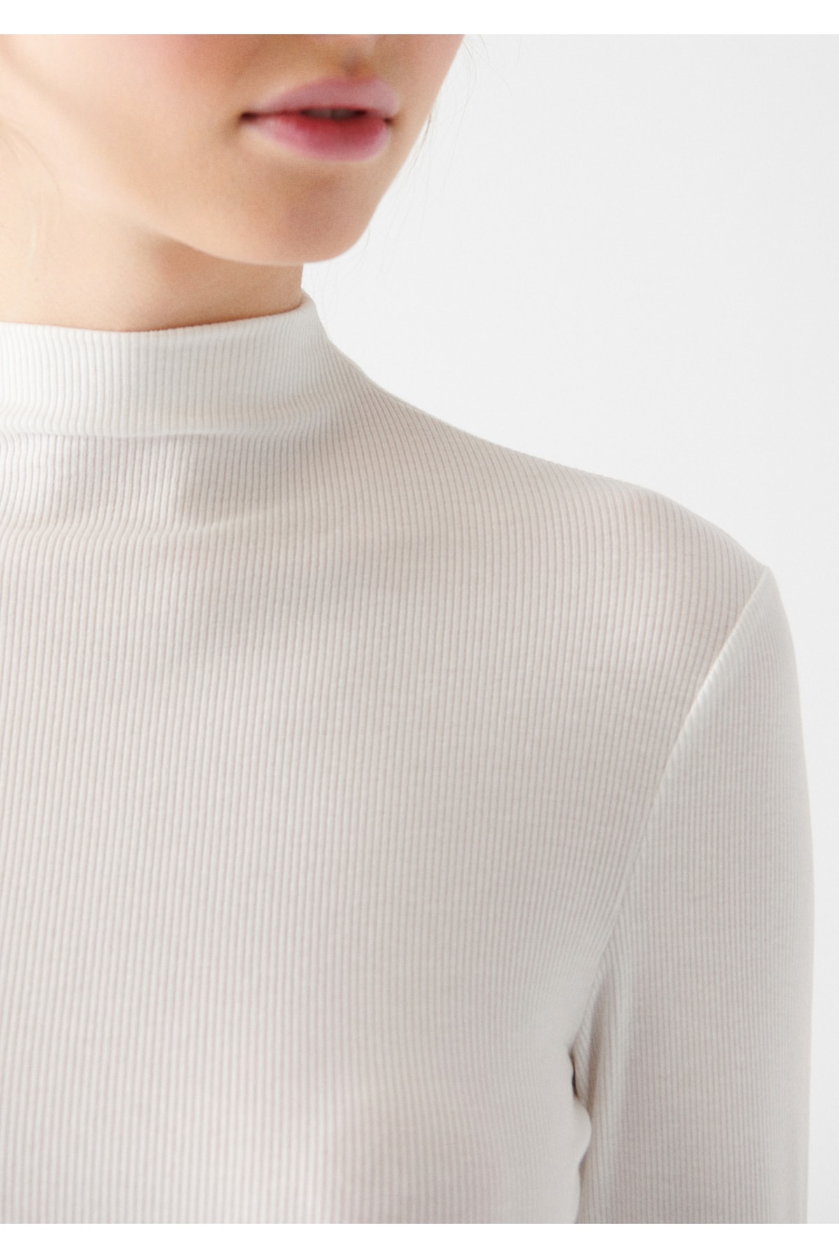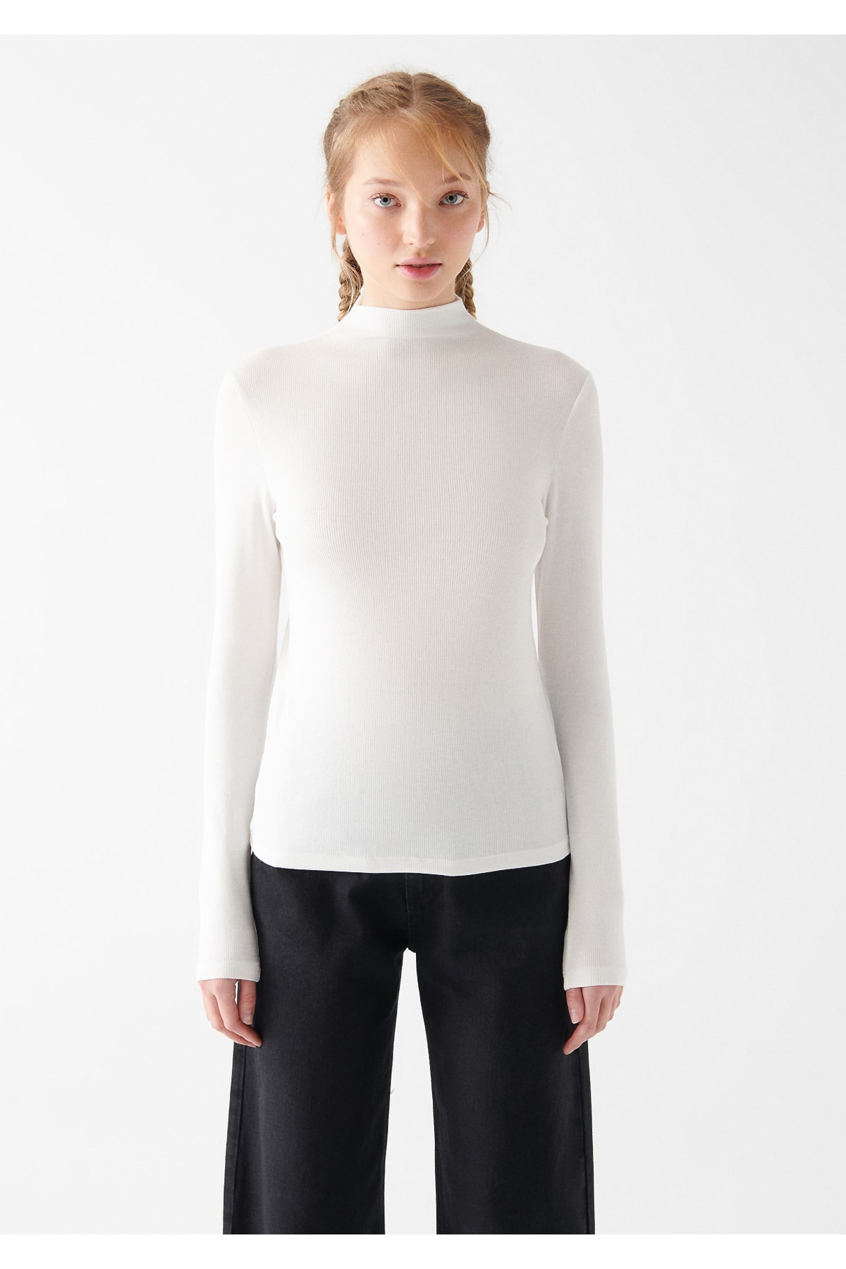تی‌شرت سفید ساده با یقه ایستاده، برش چسبان ‎۱۶۱۱۰۶۶-۷۰۰۵۷‎