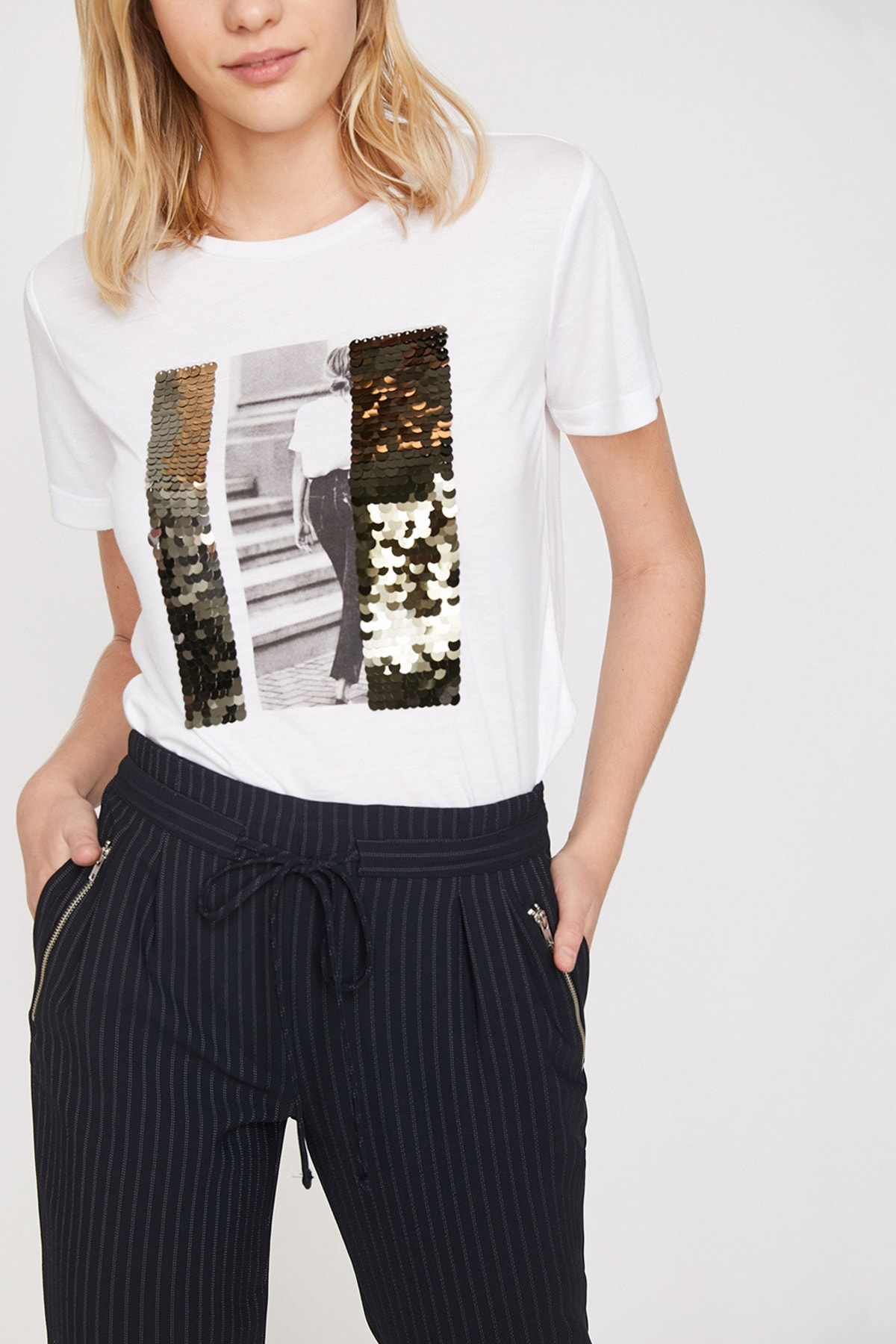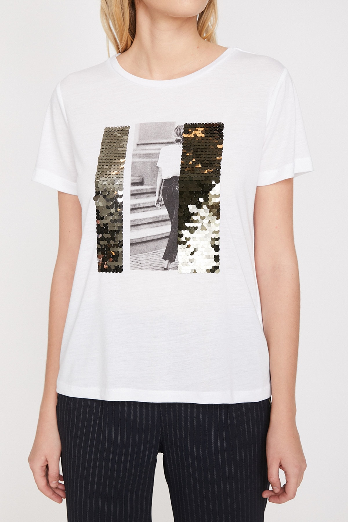 تیشرت کوتون سفید آستین کوتاه پلی استر مخلوط شده | | نمایندگی کوتون