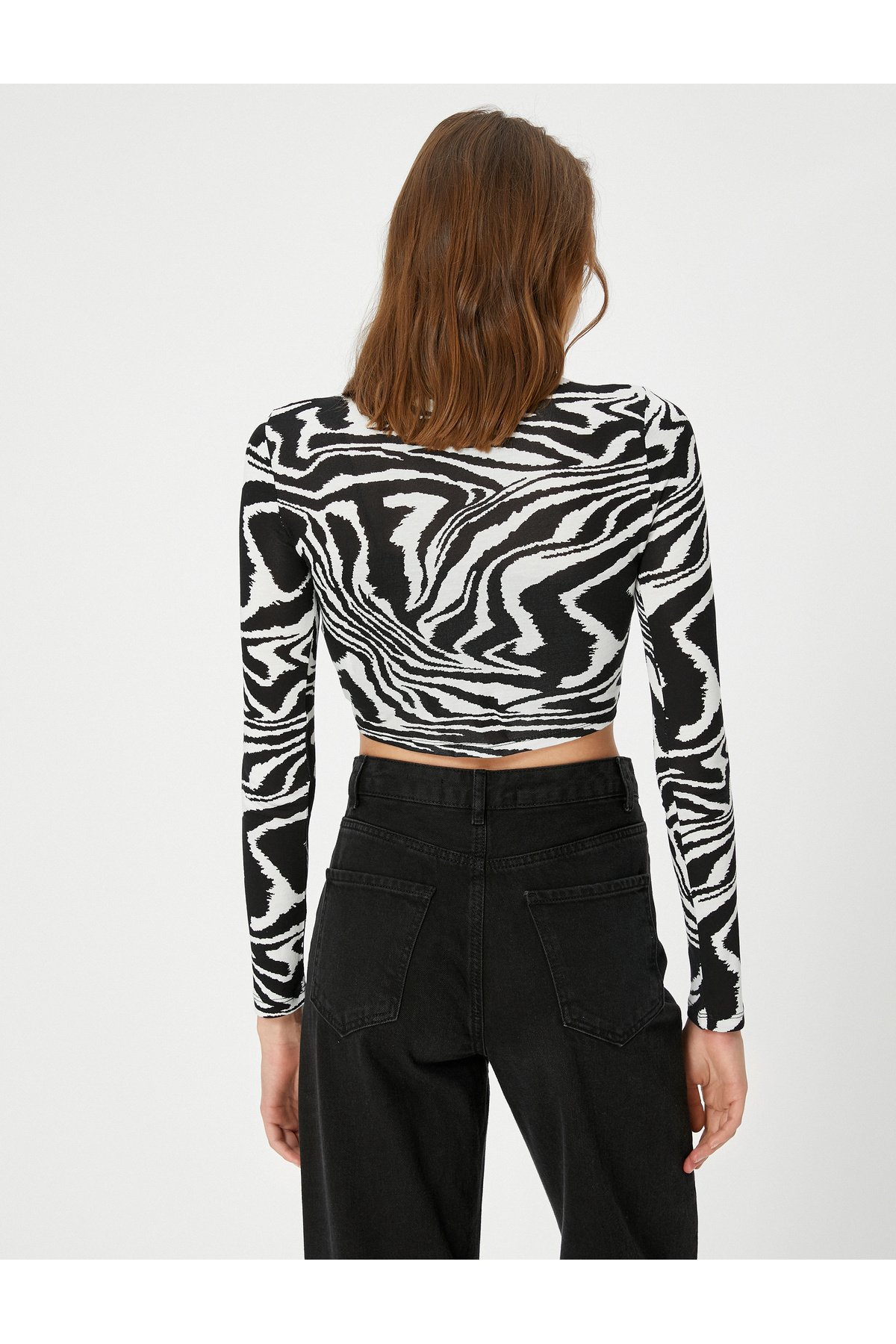 تاپ کوتاه آستین بلند با جزئیات چیندار در جلو.