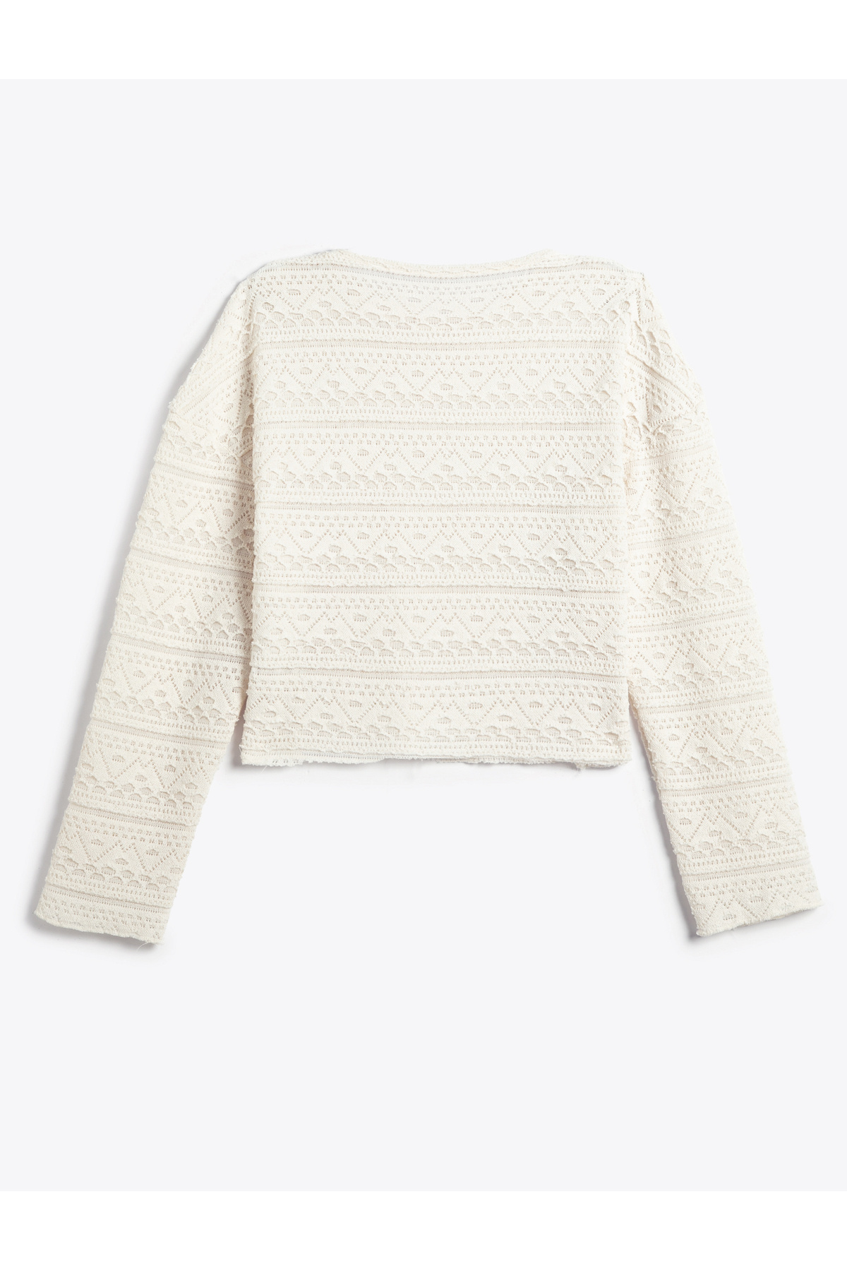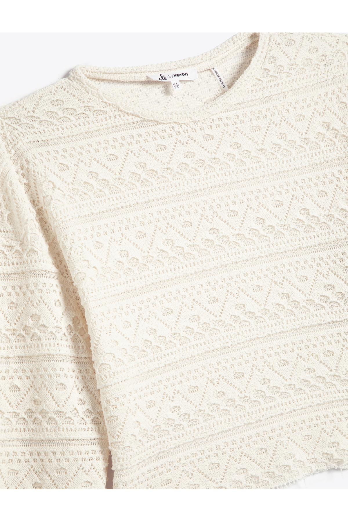 تی‌شرت آستین بلند، یقه گرد، اسلیم فیت، بافت گلدوزی شده.