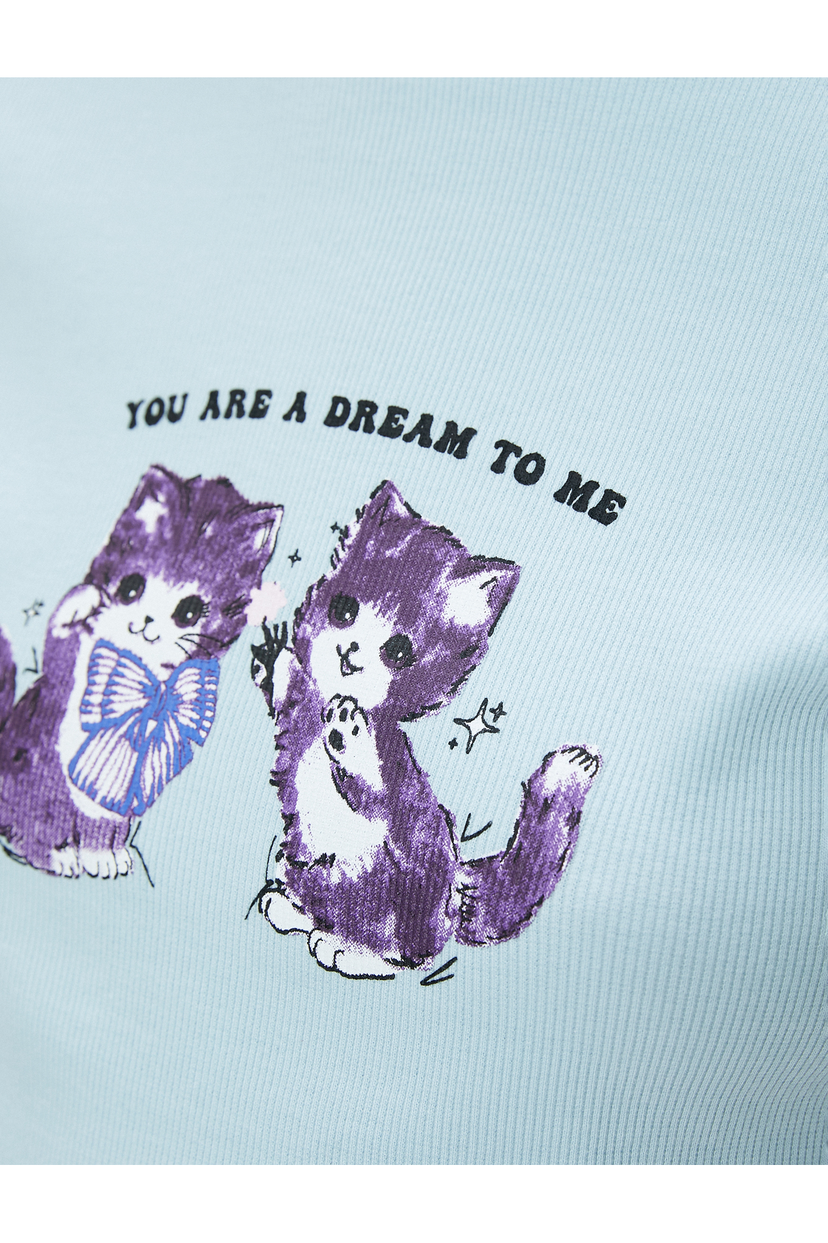 تیشرت کوتاه طرح گربه، یقه گرد، مناسب برای اندام باریک