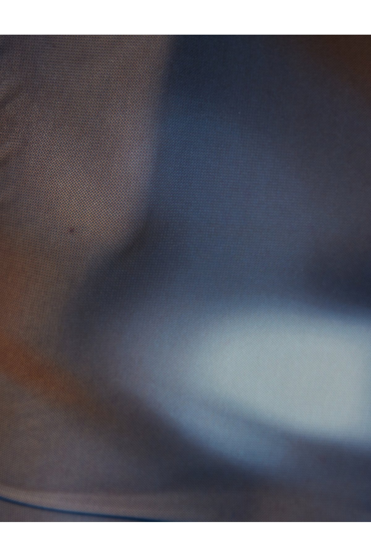 تیشرت آستین بلند با طرح انتزاعی از جنس تور، جزئیات چیندار و برش نامتقارن.