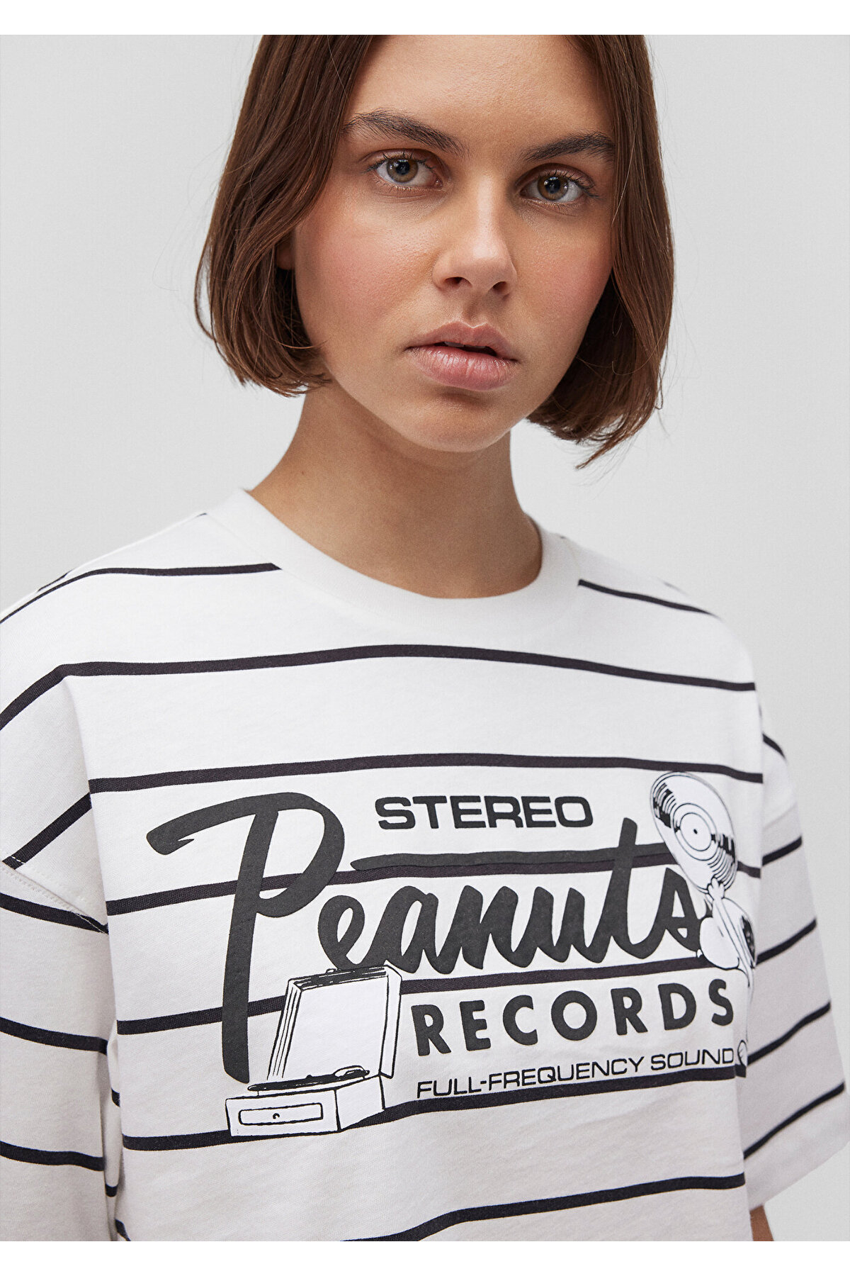 تی‌شرت سفید راه‌راه طرح‌دار اسنوپی، مدل کوتاه/کوتاه، ‎۱۶۱۲۸۴۹-۸۶۶۷۸
