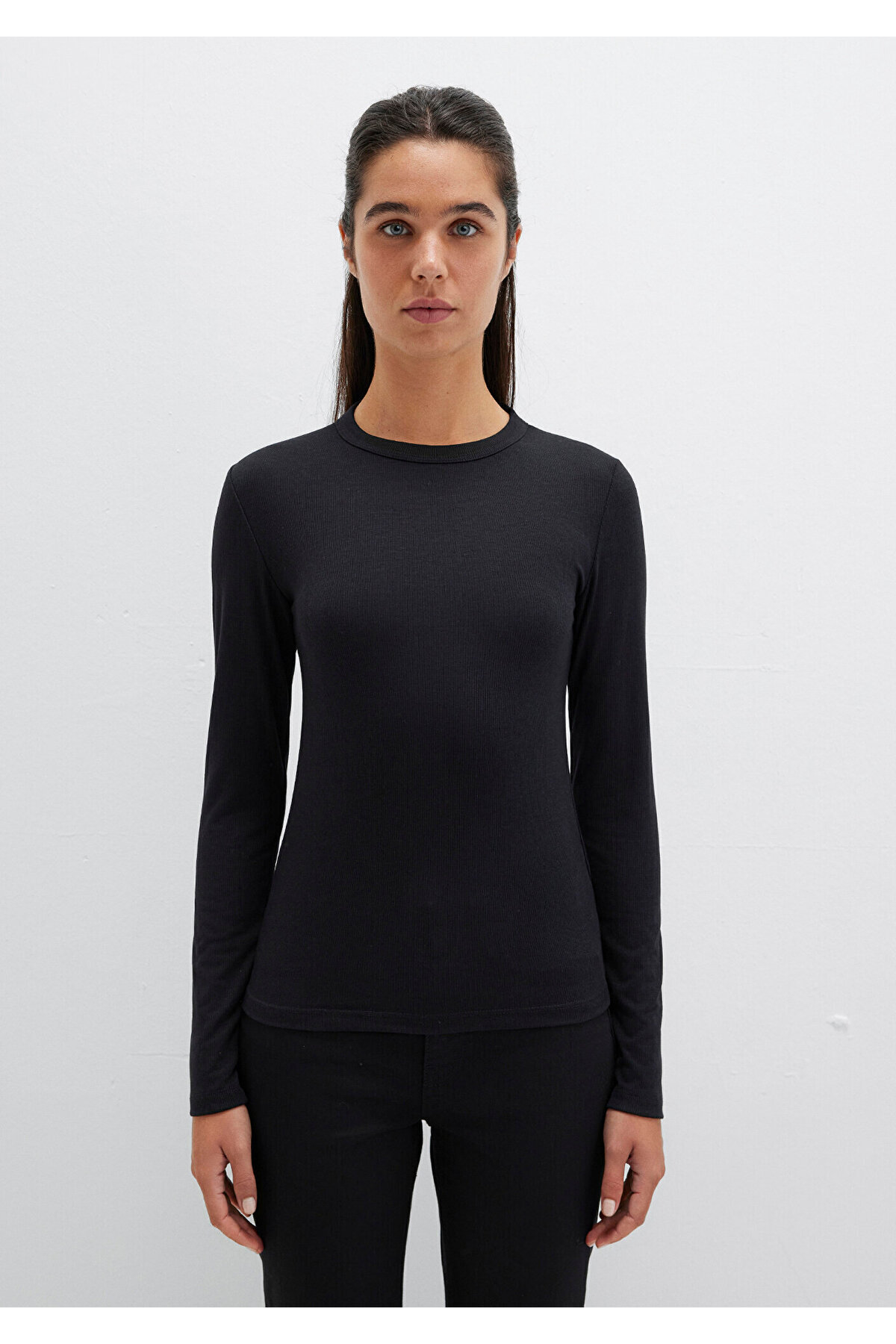 تیشرت آستین بلند مشکی ساده، برش چسبان، مدل ۱۶۱۲۸۱۷-۹۰۰
