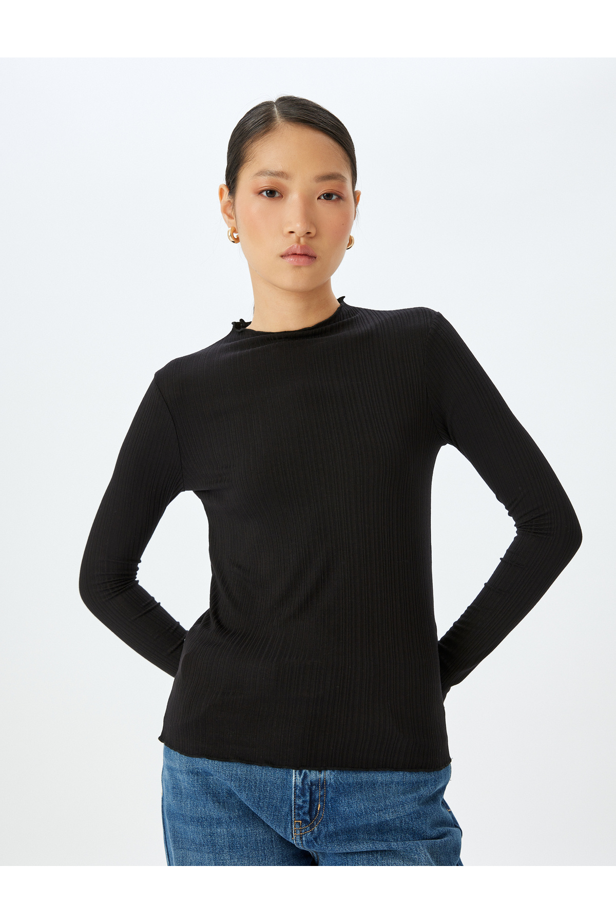 تیشرت بافتدار سبک، یقه ایستاده، آستین بلند، از جنس پارچه ویسکوز