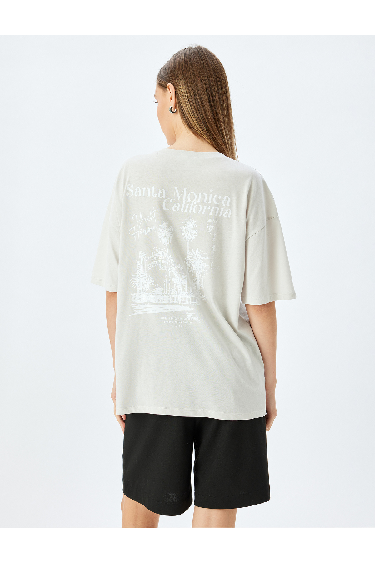تیشرت گشاد گشاد با یقه گرد و آستین کوتاه، شعار چاپ شده در پشت