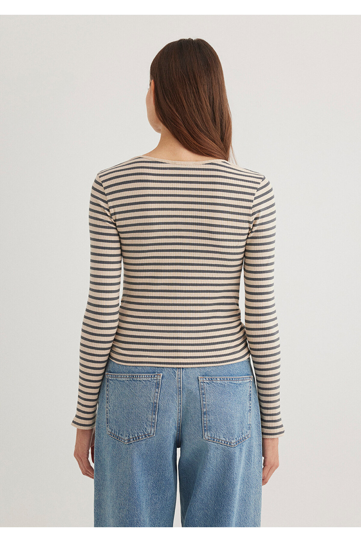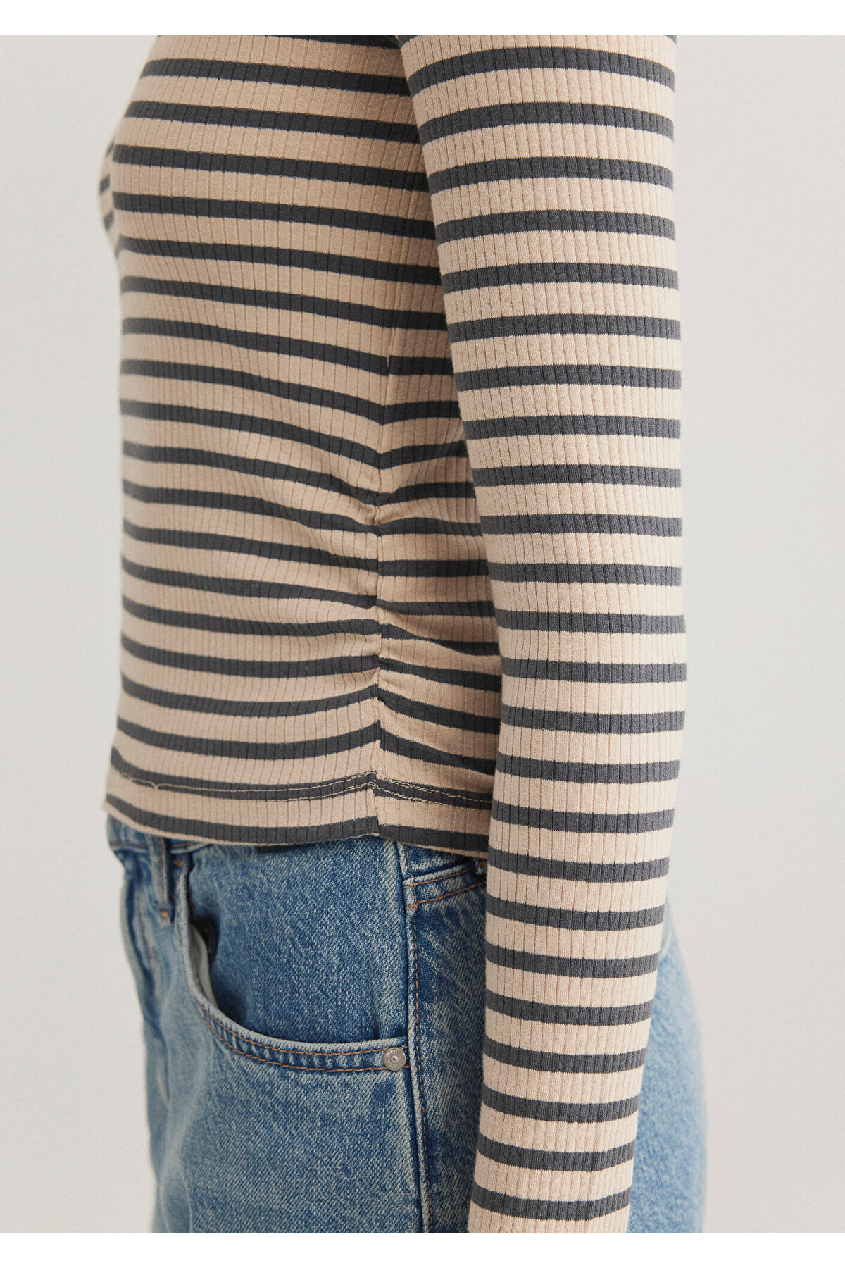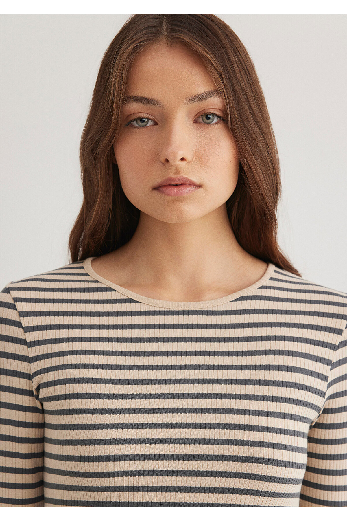 تی‌شرت راه راه بژ، اسلیم فیت / برش باریک، کد ۱۶۱۲۶۴۸-۸۸۰۳۲