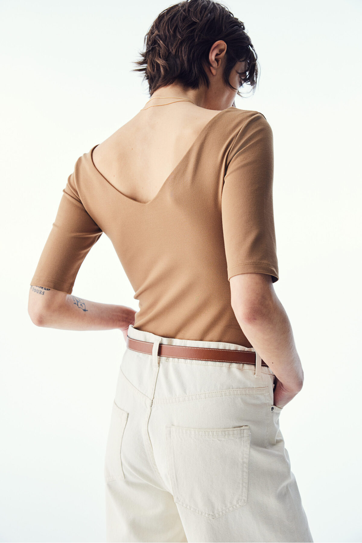 تیشرت اچ اند ام بژ آستین کوتاه پلی استر | | نمایندگی اچ اند ام