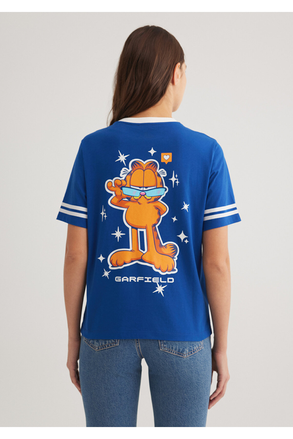 تیشرت آبی طرح گارفیلد سایز معمولی 1613268-89855