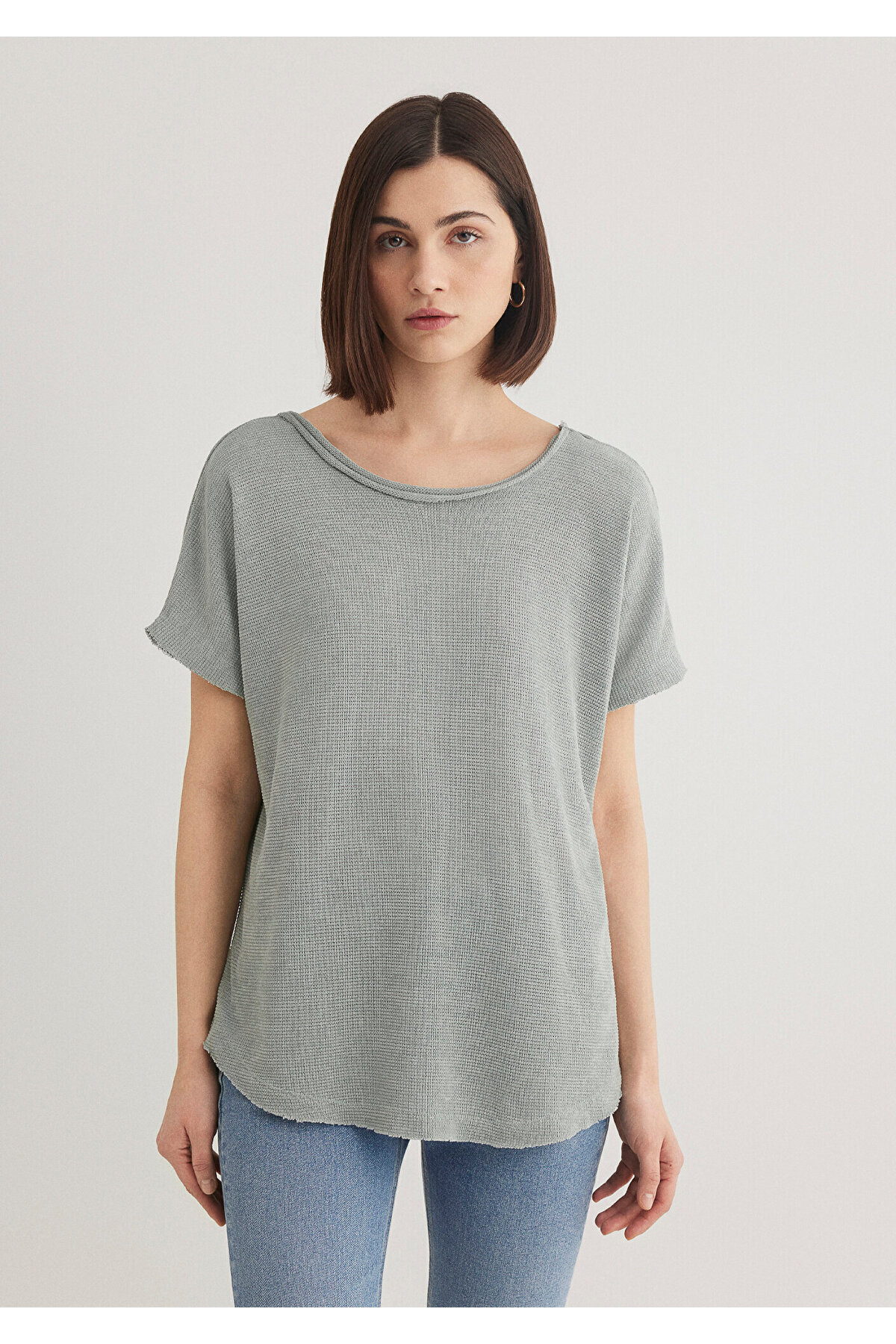 تی‌شرت گشاد سبز بافت‌دار ساده 167311-81325