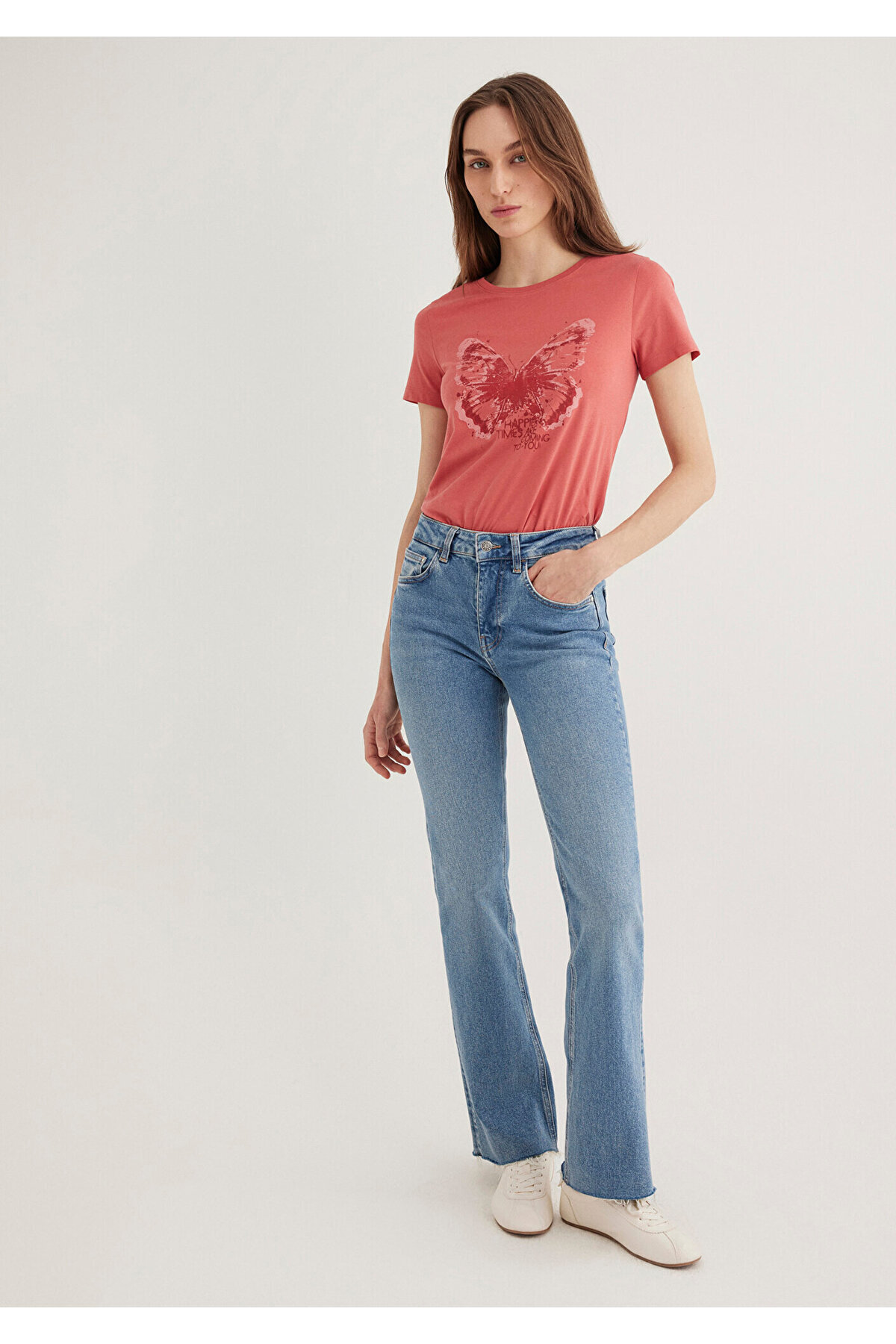 تیشرت صورتی با طرح پروانه، اسلیم فیت / برش باریک ۱۶۱۳۱۹۶-۷۱۱۰۲