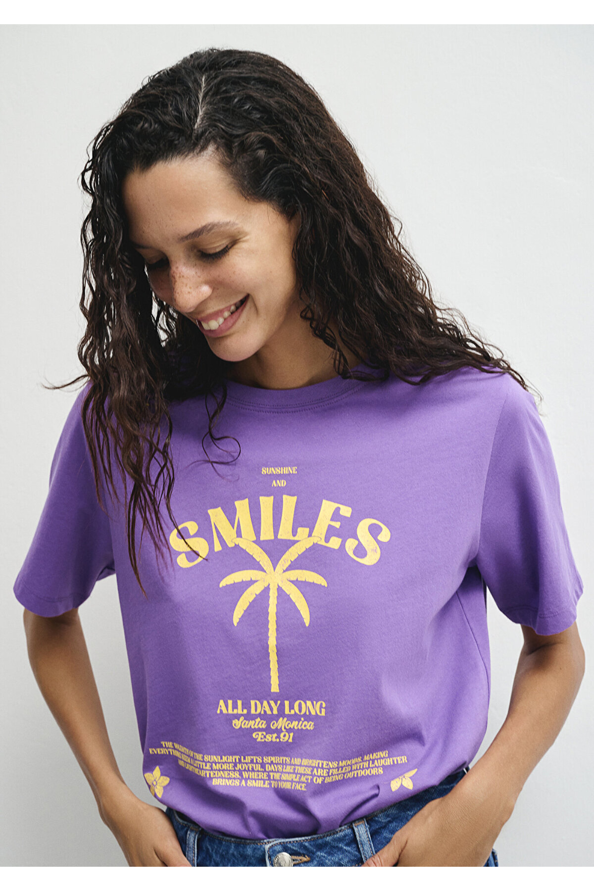 تیشرت بنفش با طرح درخت نخل، سایز معمولی / برش معمولی ۱۶۱۳۱۶۴-۸۵۸۸۸