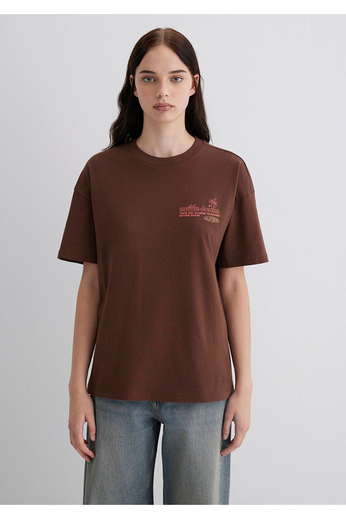 تیشرت قهوهای طرحدار گشاد / گشاد، مدل ریلکس و برشدار، کد ۱۶۱۳۵۳۰-۷۰۲۴۲