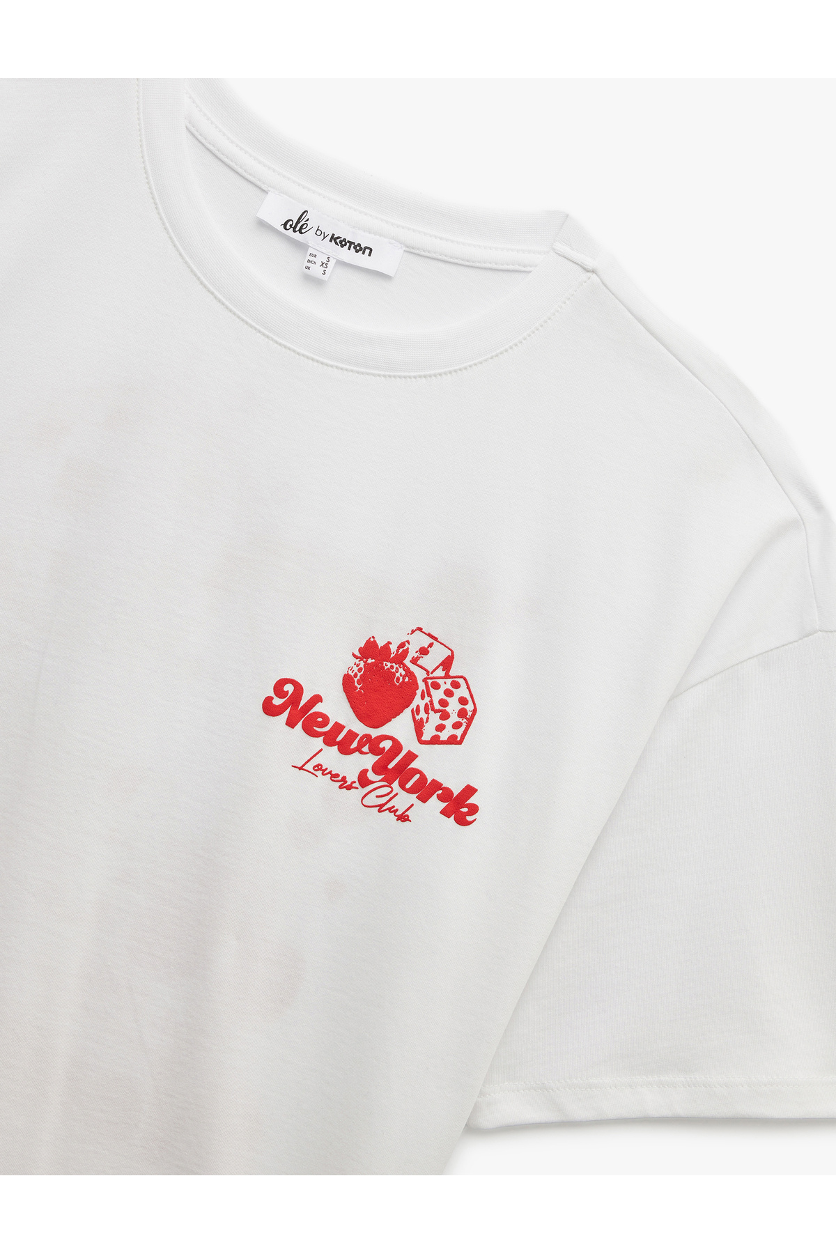 تی‌شرت آستین کوتاه یقه گرد نخی سایز بزرگ با طرح توت فرنگی در پشت.