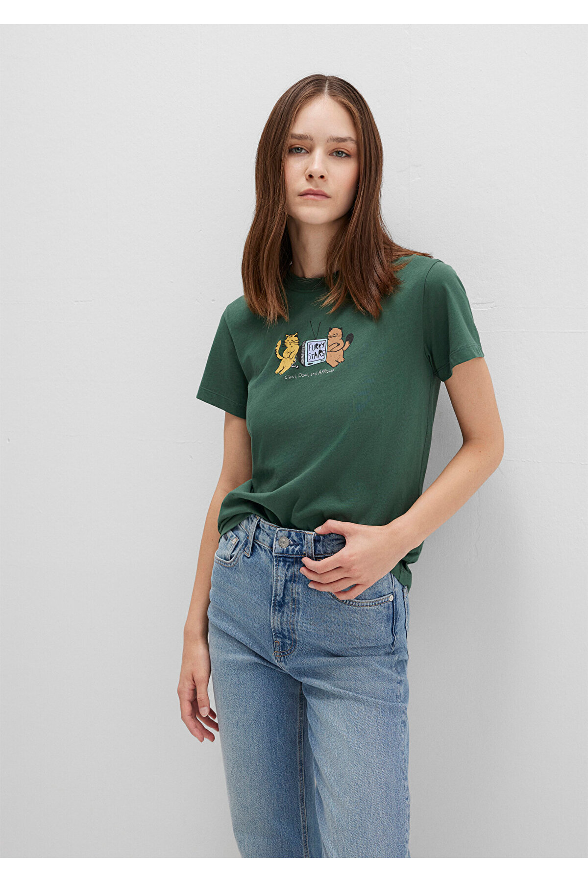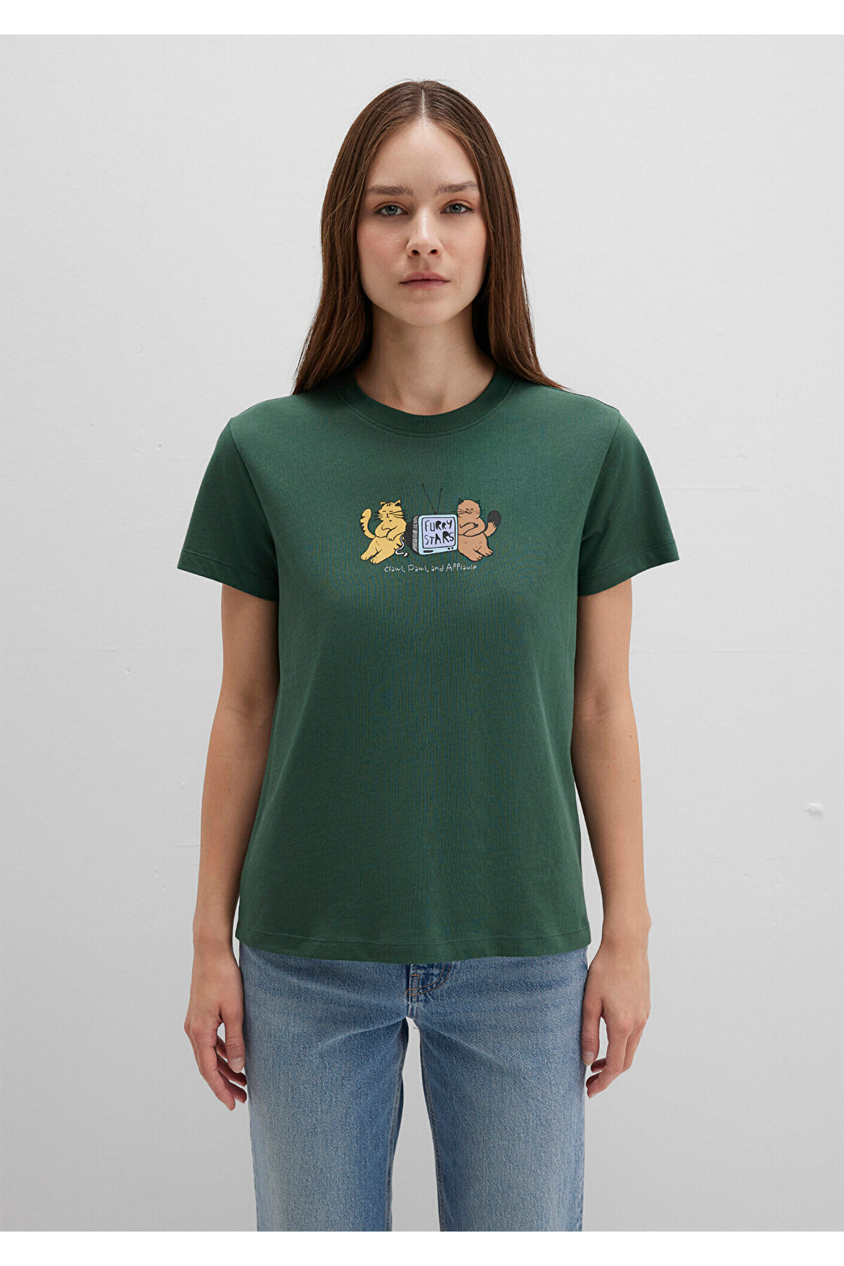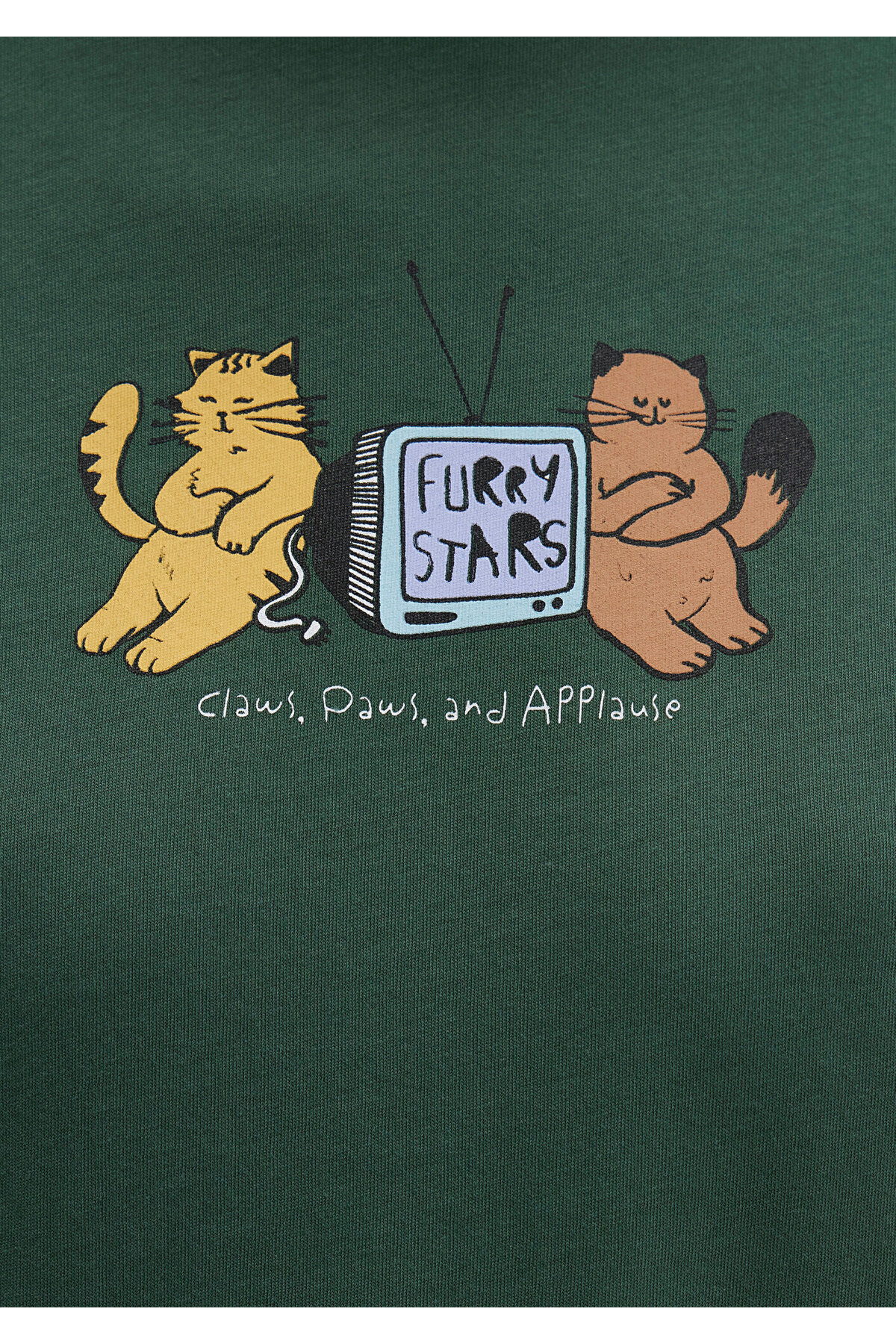 تیشرت سبز طرح گربه، نیمهاسلیم، سایز 1613472-71924