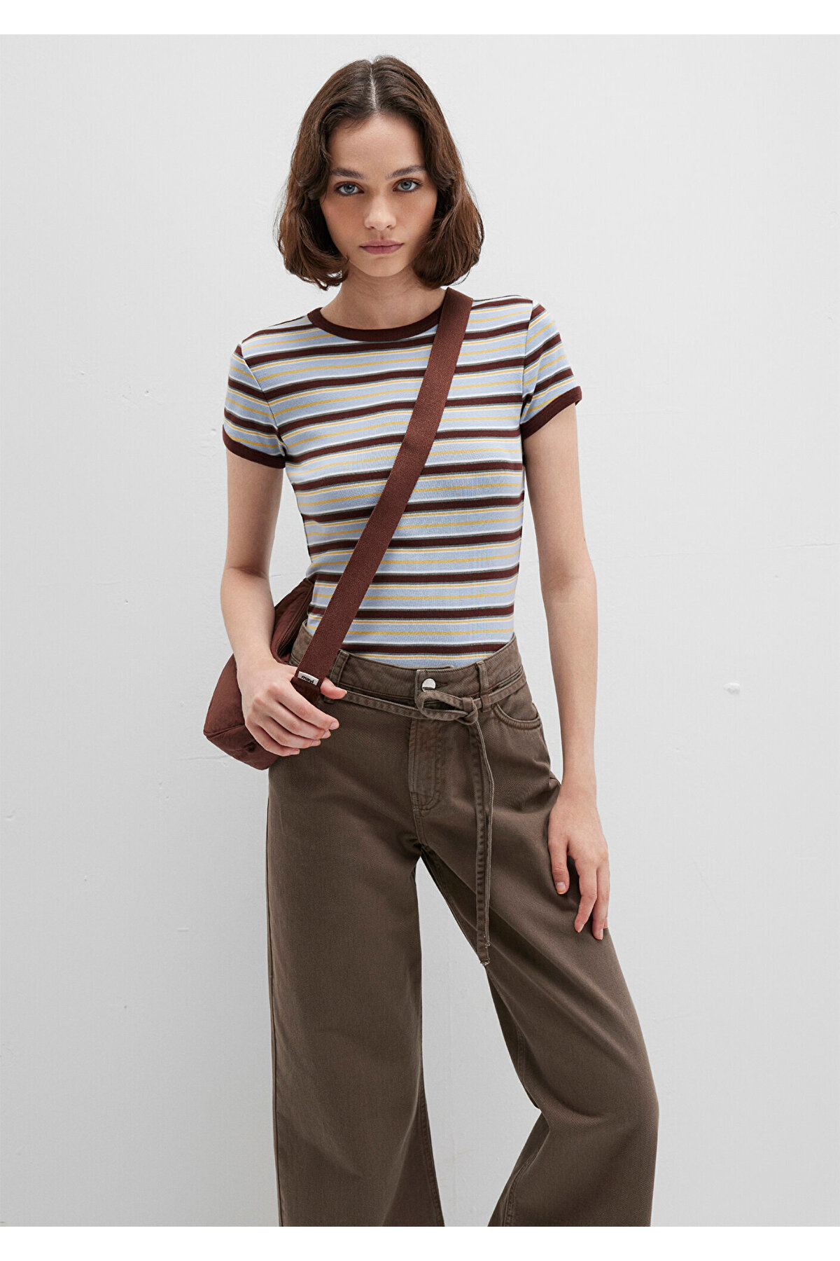 تی‌شرت راه راه قهوه‌ای، فیت / برش بدن‌نما ۱۶۱۳۳۷۸-۹۰۷۳۵