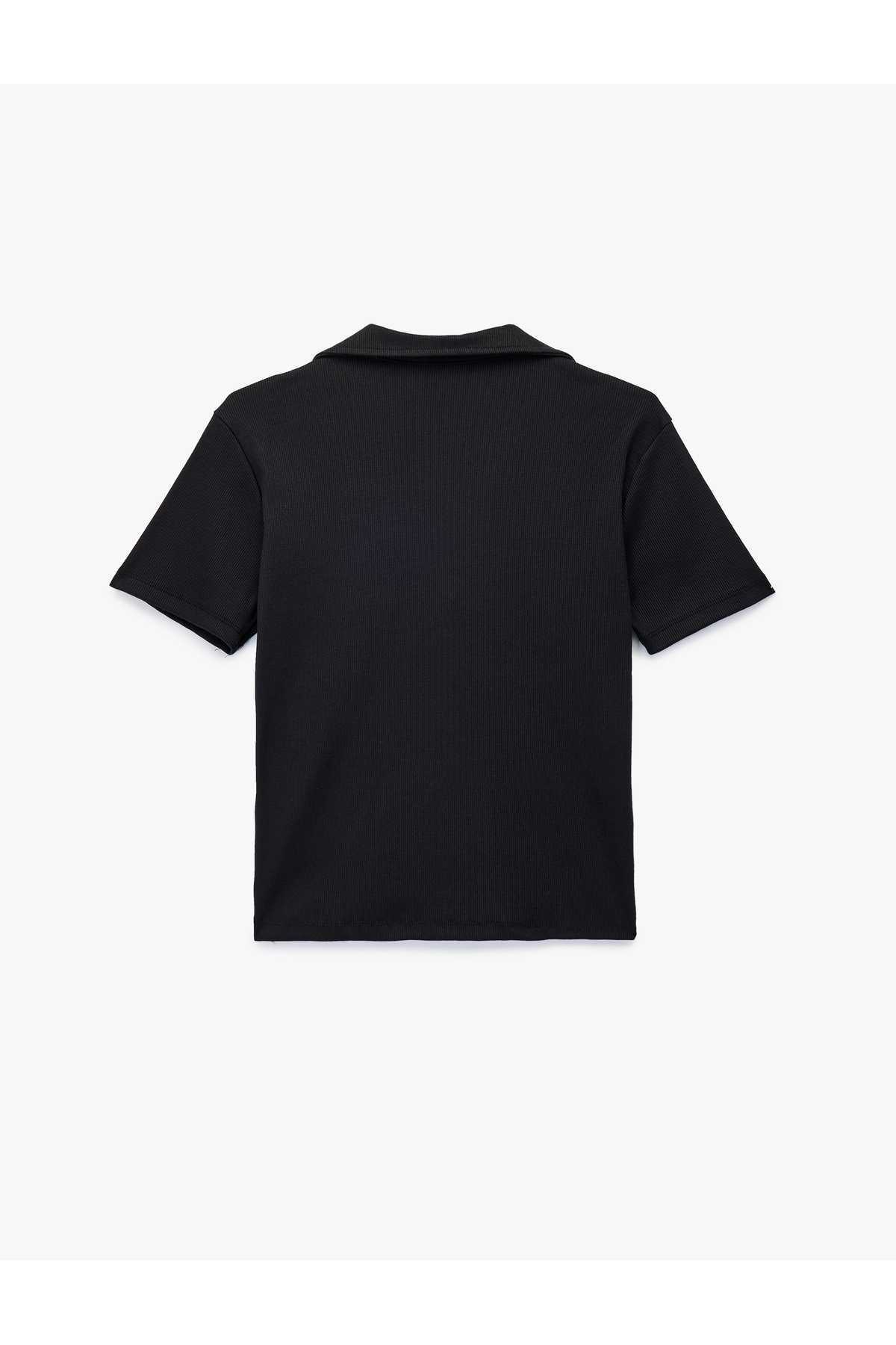 تیشرت یقهدار آستین کوتاه اسلیم فیت نخی با جزئیات گلدوزی پاپیونی