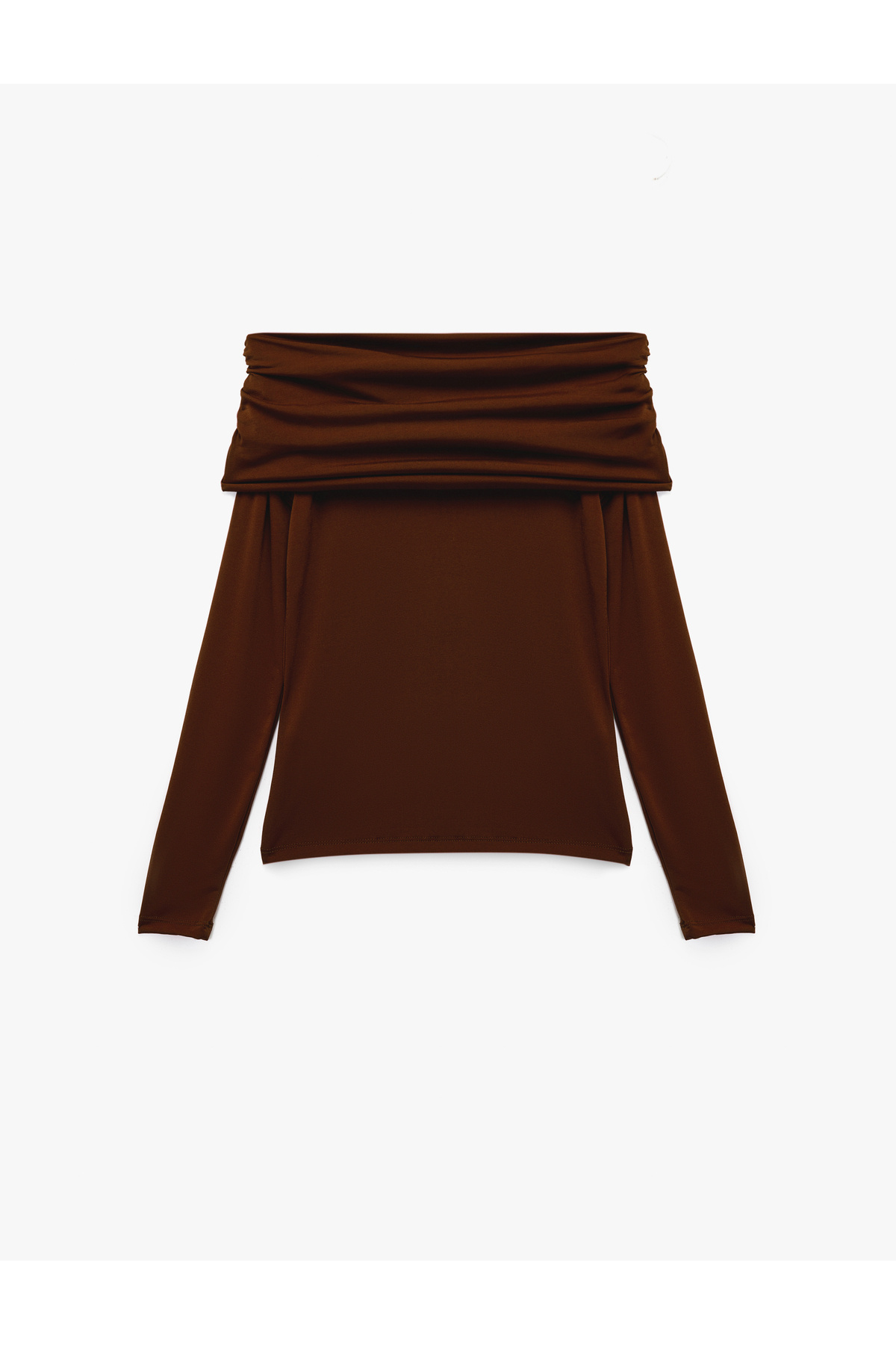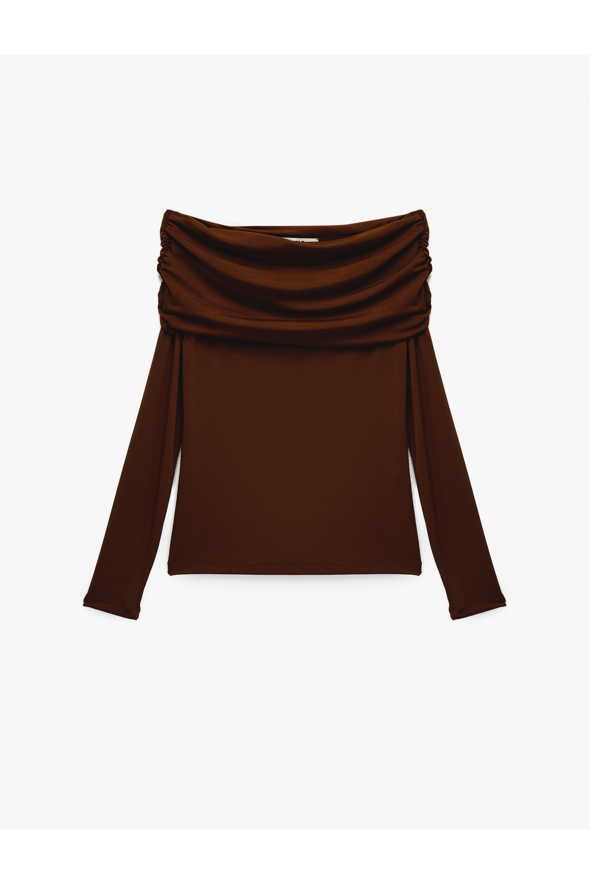 تی‌شرت آستین بلند اسلیم فیت مدل Draped Off-Should