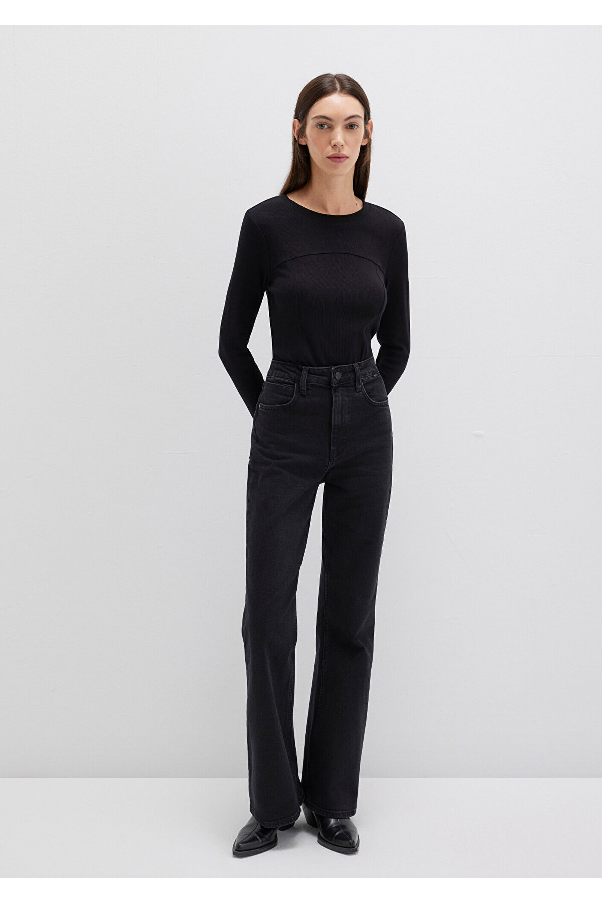 تیشرت آستین بلند مشکی، فیت / فیت بدننما، مدل ۱۶۱۳۶۲۵-۹۰۰
