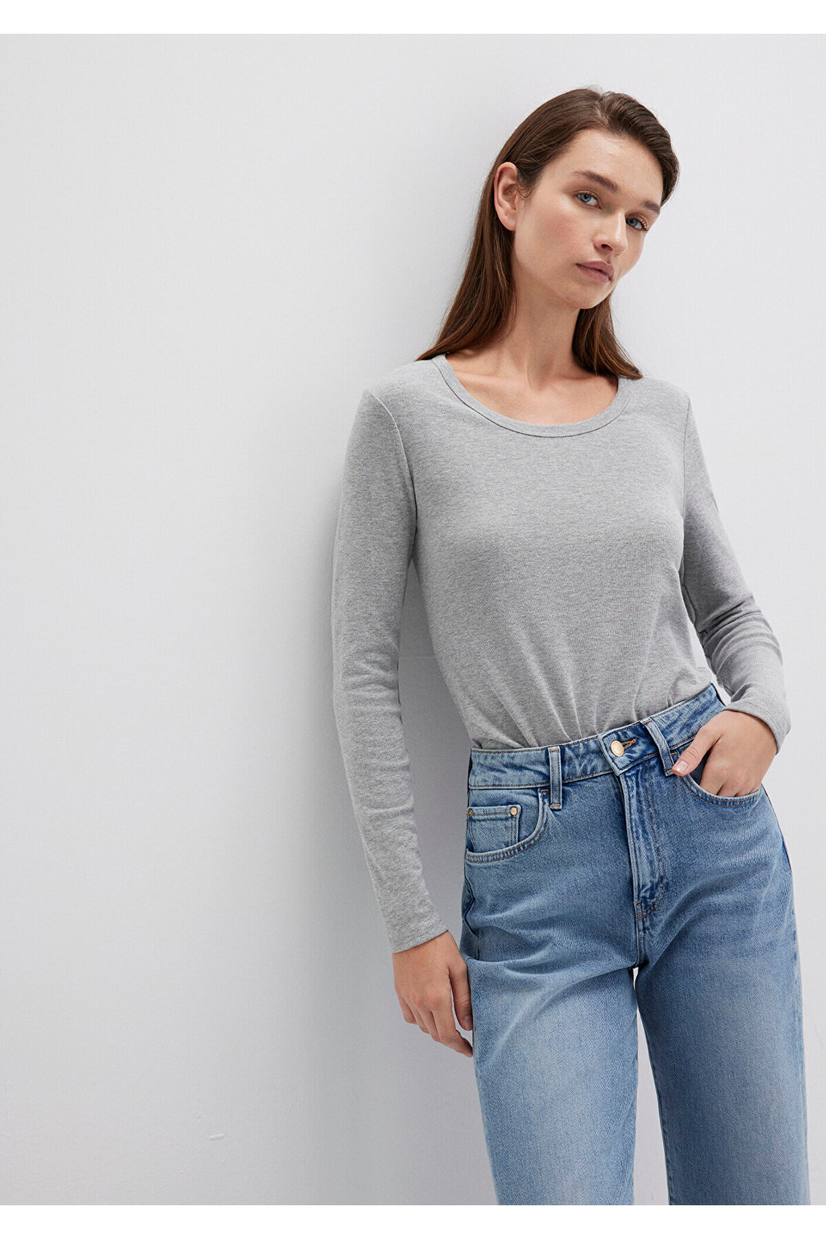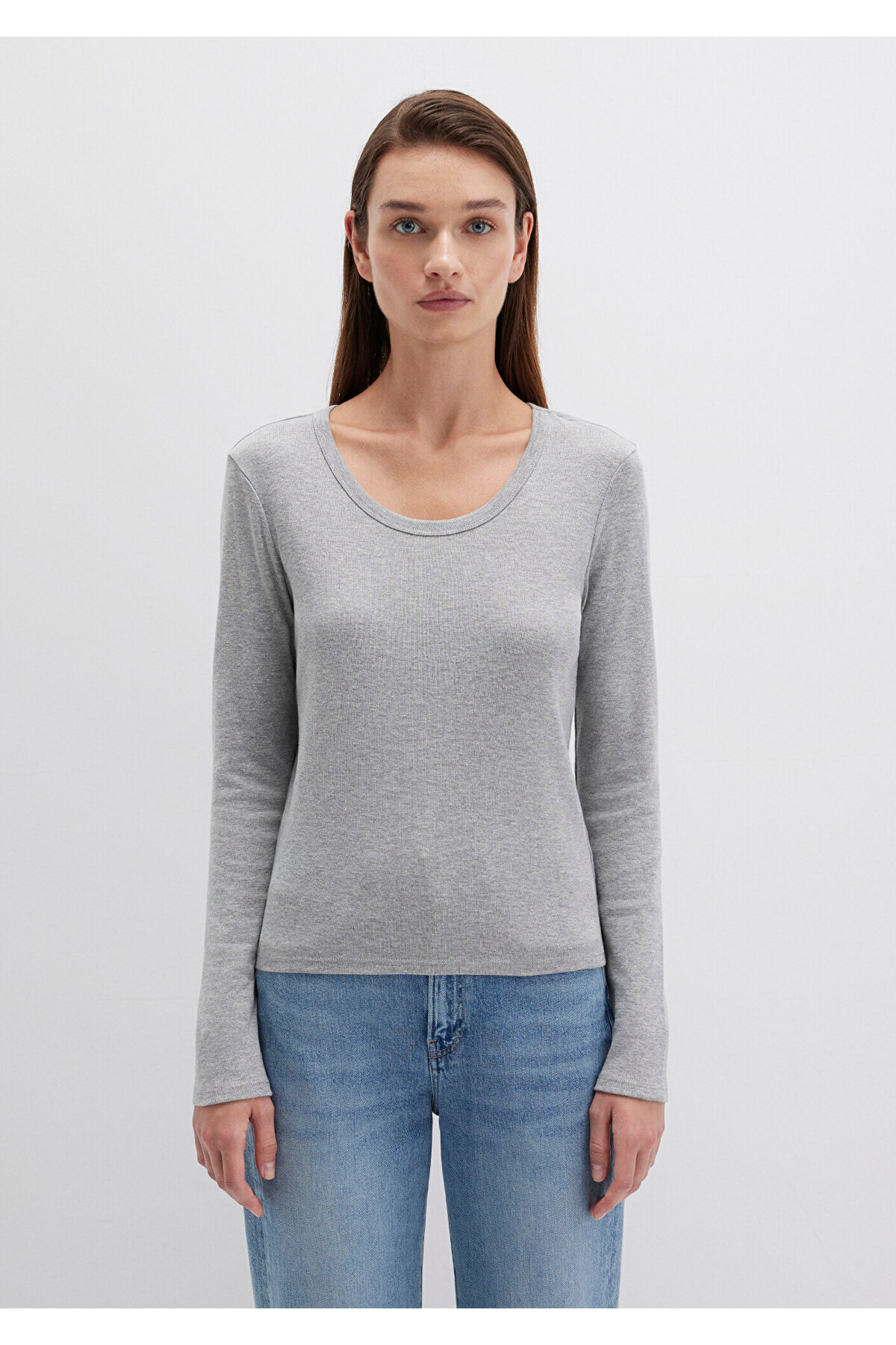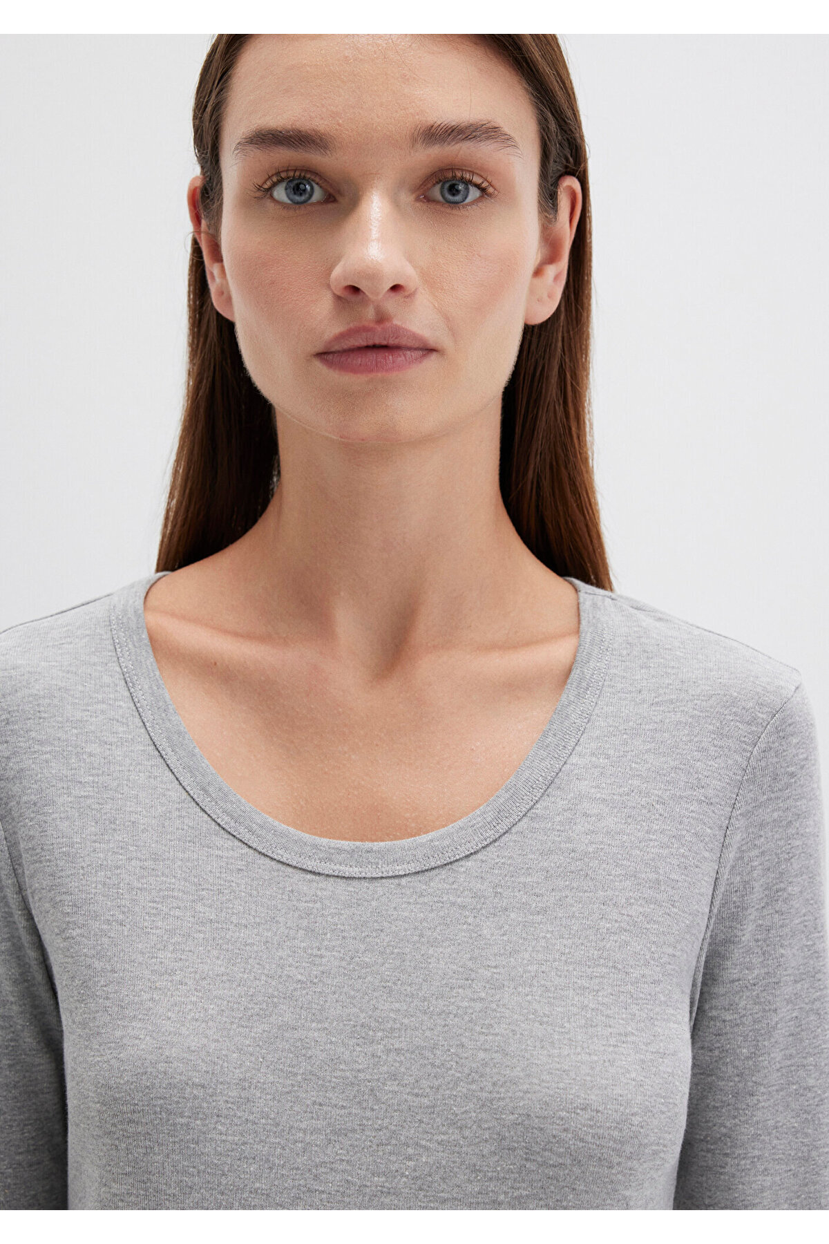 تیشرت آستین بلند خاکستری ساده، فیت / فیت بدن، ۱۶۱۳۳۲۳-۸۳۰۹۶