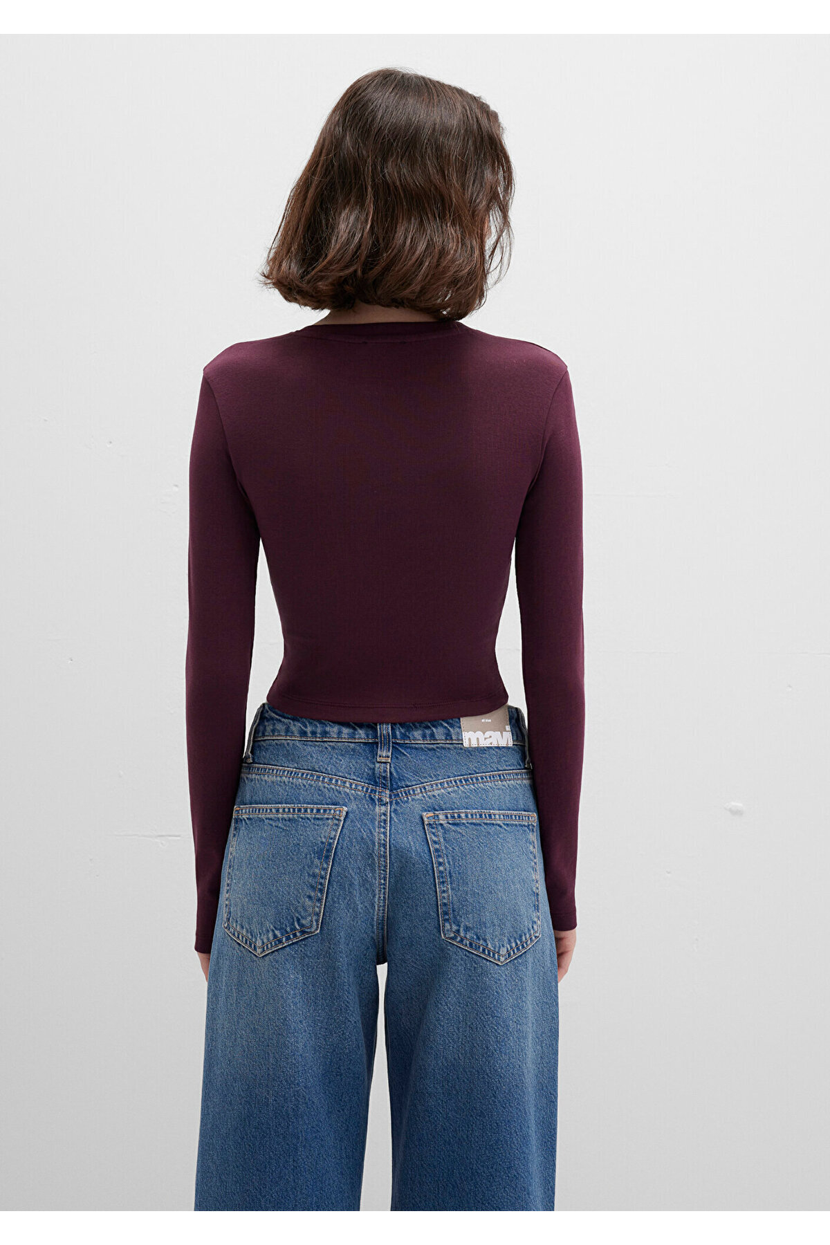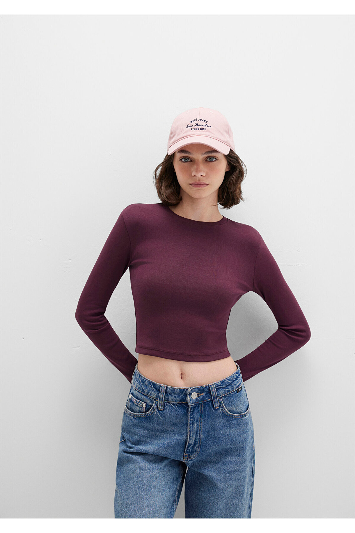 تیشرت آستین بلند بنفش کوتاه، مدل کراپ، سایز کوچک، سایز کوچک، کد ۱۶۱۲۸۲۲-۷۰۴۳۴