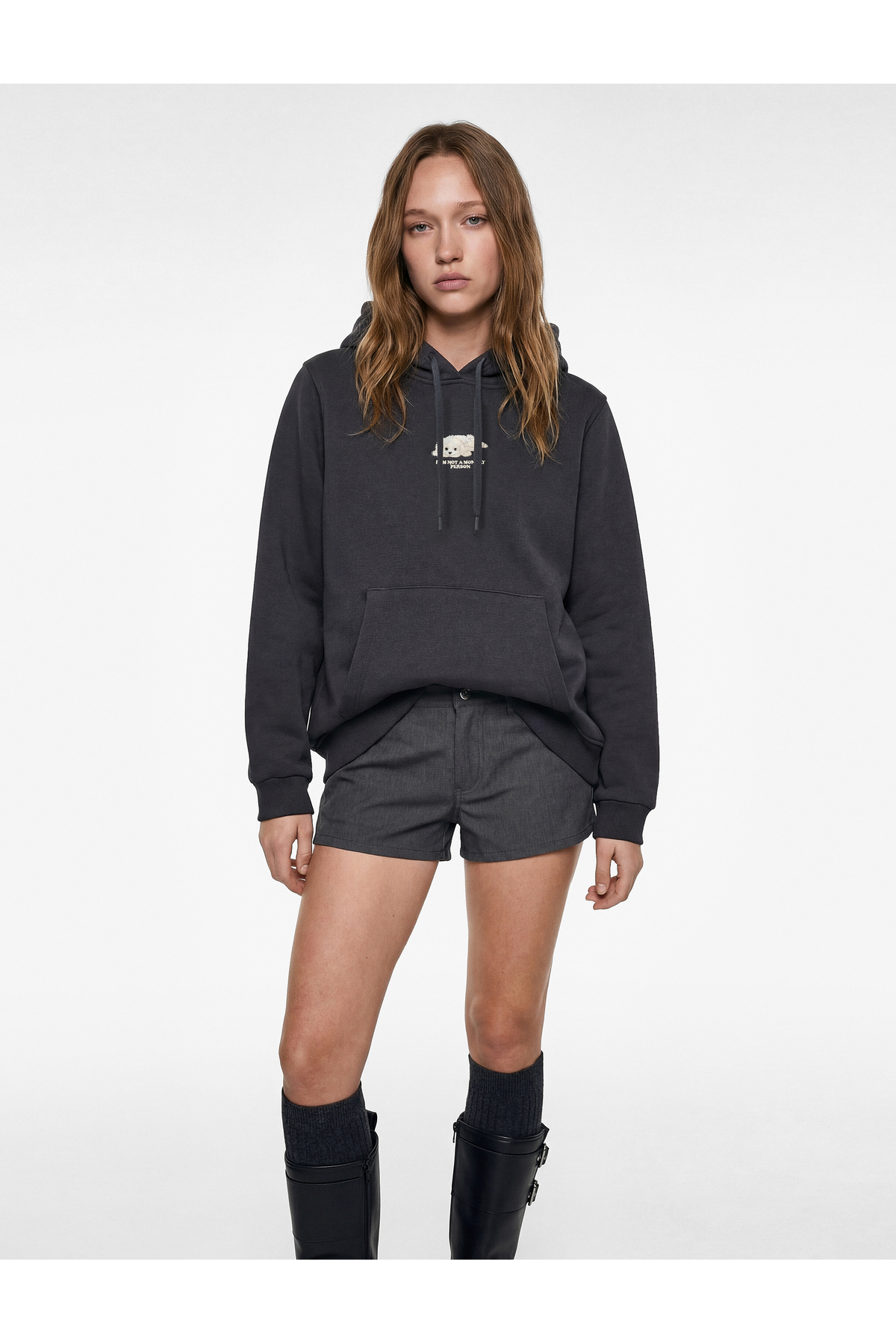 سویشرت آستین بلند کلاهدار جیبدار با گلدوزی طرح سگ