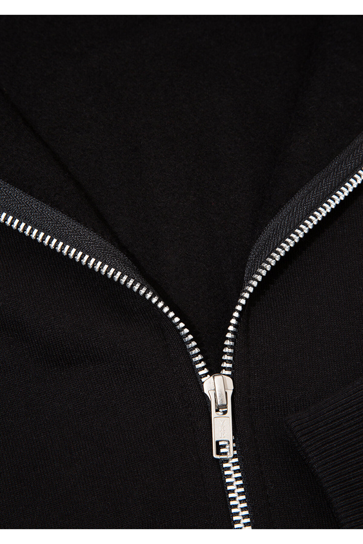 سویشرت مشکی کلاهدار زیپدار طرح لوگودار 1S10178-900