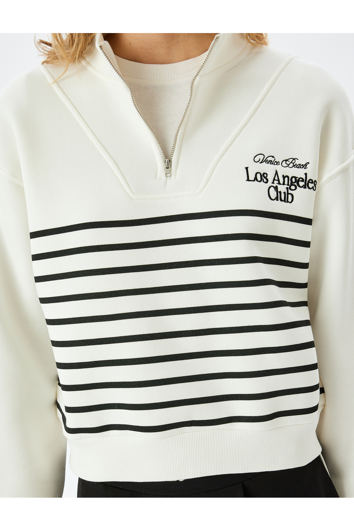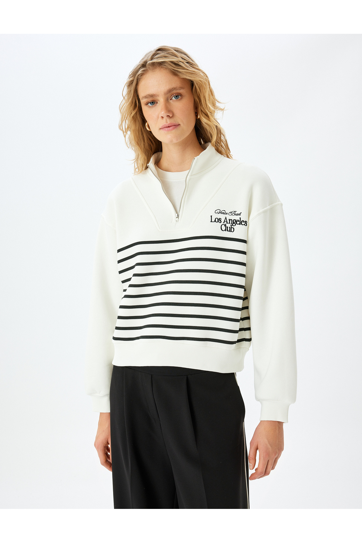 سویشرت نیم زیپ راه راه یقه ایستاده مخلوط پنبهای