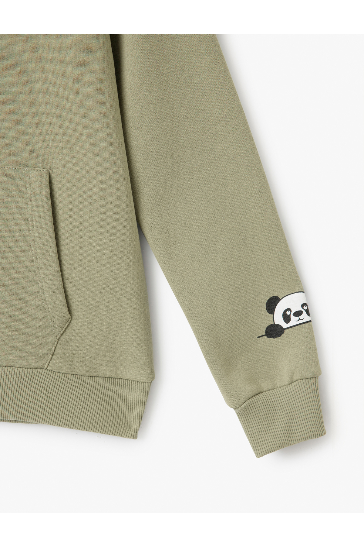 سویشرت بزرگ کلاهدار طرح پاندا با جیب کانگورو و پارچه برسخورده