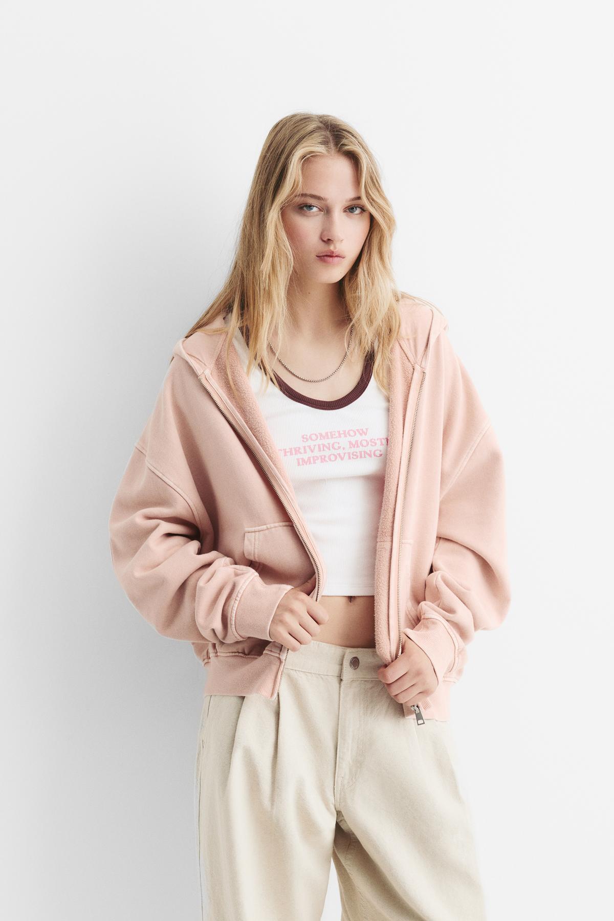 سویشرت زنانه صورتی پول اند بیر | 7560313 Pull & Bear