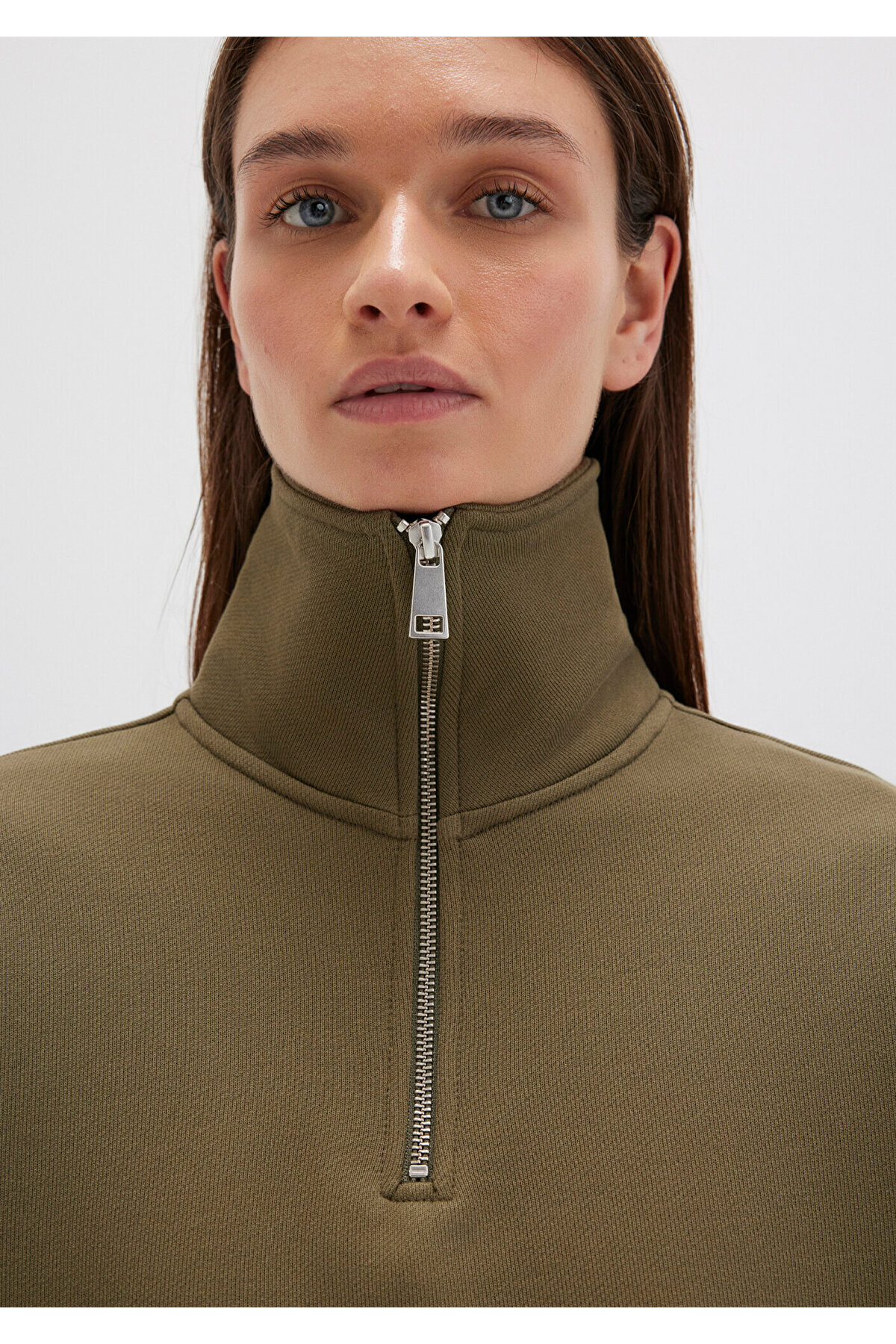 سویشرت خاکی نیم زیپ 1S10391-71589
