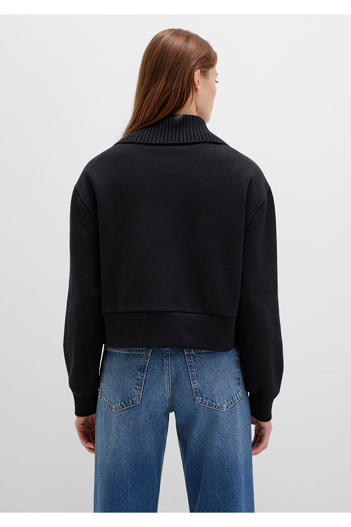 سویشرت مشکی یقه ایستاده نیم زیپ 1S10434-900