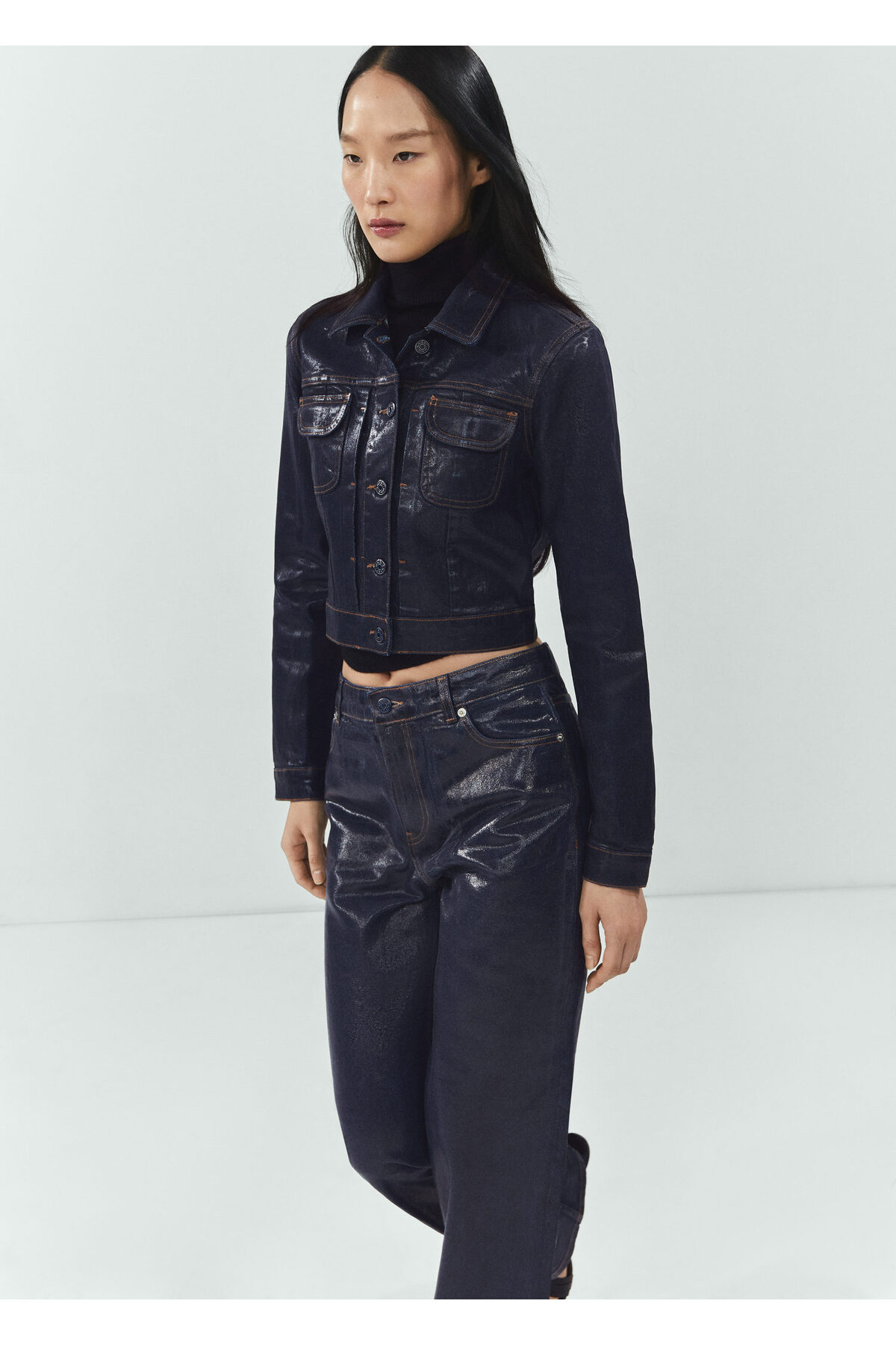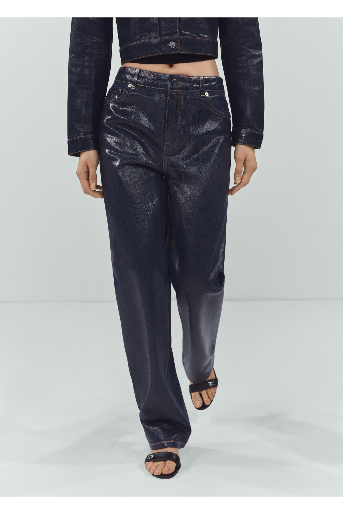 شلوار جین زنانه آبی سرمه ای منگو | 67053698 MANGO