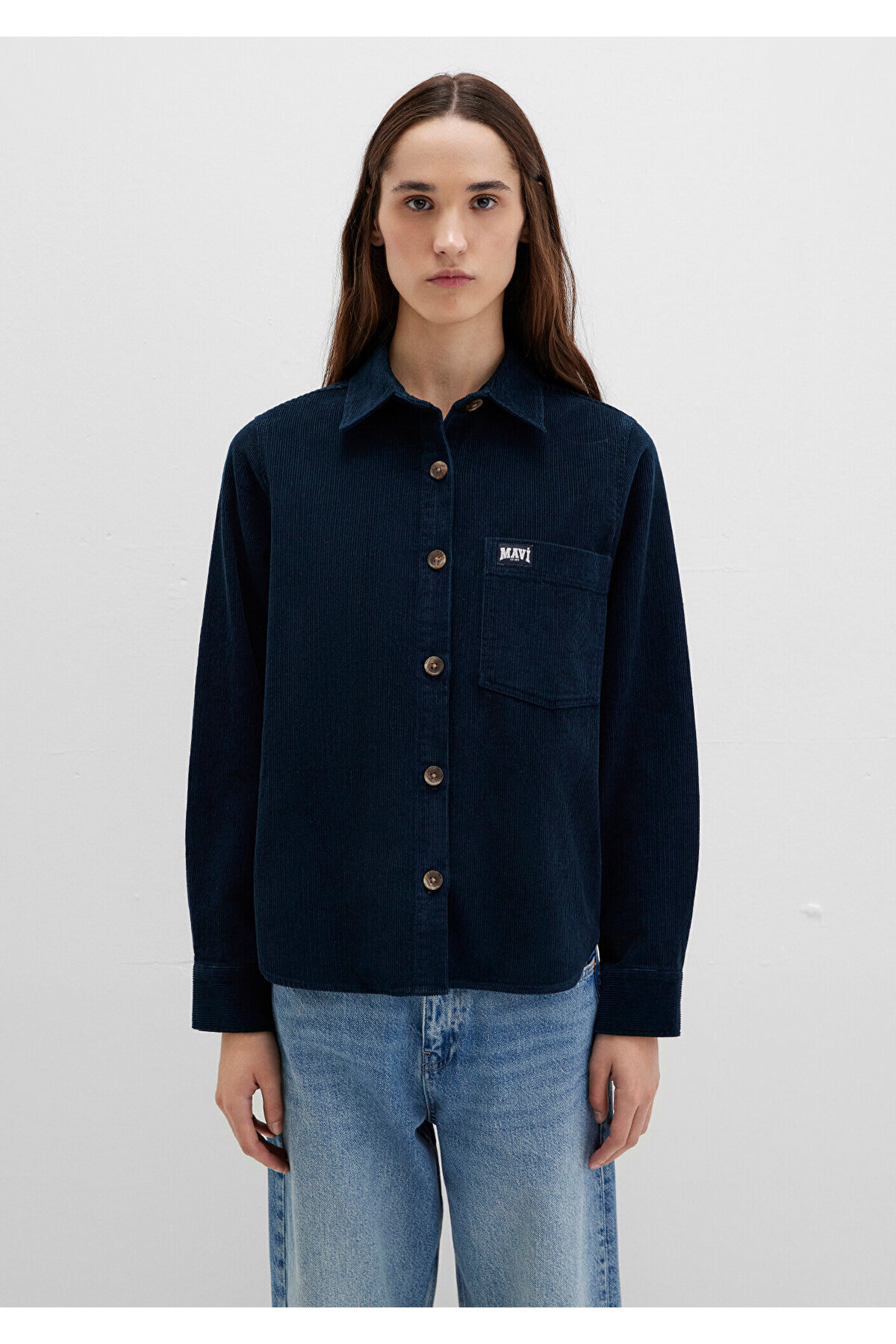 پیراهن مخمل سرمهای طرحدار، فیت معمولی / برش معمولی ۱۲۱۱۲۷۷-۸۰۸۷۲
